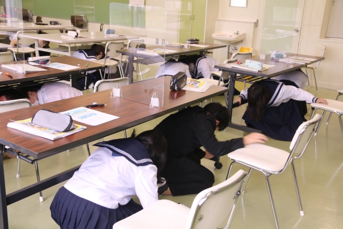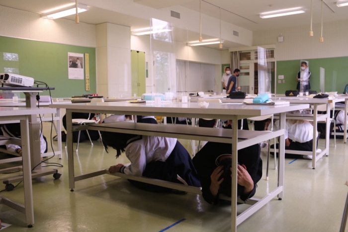 9月9日の「合同避難訓練」に向けて 2022年09月01日(木) 本日、9月9日に行われる「合同避難訓練」に向けてオリエンテーションを行いました。「合同避難訓練」とはCSと連携し、中学校だけでなく保育園、小学校、高校生、地域の方々、町の防災交通課、中標津警察署などの協力を得て合同で行う避難訓練です。災害に対する意識や、当日の体験内容などについて確認しました。 オリエンテーション後はシェイクアウト訓練を行いました。みんな真剣に取り組み、災害に対する意識が高まりました。