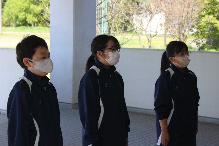 まずはバスに乗り込む前に出発式です。事前に準備したしおりをもとに目標やルール、マナーを確認しました。