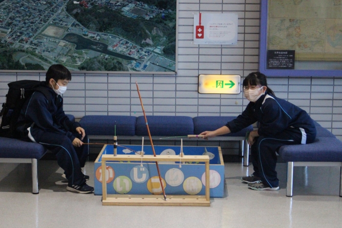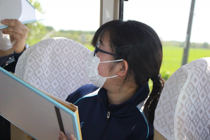 バスの中では、生徒の企画、進行でクイズや絵しりとりのレクレーションを楽しみました。