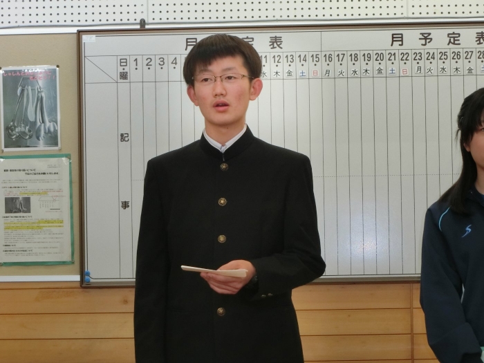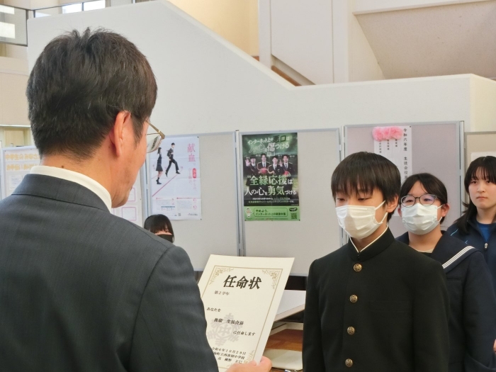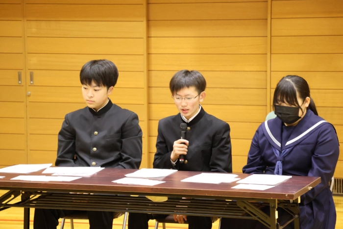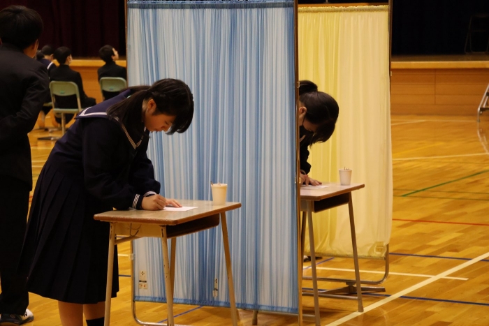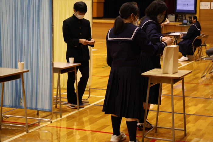 【2学期】生徒会役員選挙 2024年10月30日(水) 行事 先週の金曜日に生徒会役員選挙が行われました。 立候補した3名はいずれも「学校をより良くしたい」という気持ちを立会演説の中で述べていました。 また、演説後には講堂横に設けられた投票場所にて一人一人投票を行いました。 翌週の全校集会では週末に行われたバドミントンの大会の表彰や新生徒会の任命状が手渡されました。 各学年からの発表ももちろんありました。 こちらは旧生徒会の3名。一年間西春別中学校を支えてくれてありがとうございました。