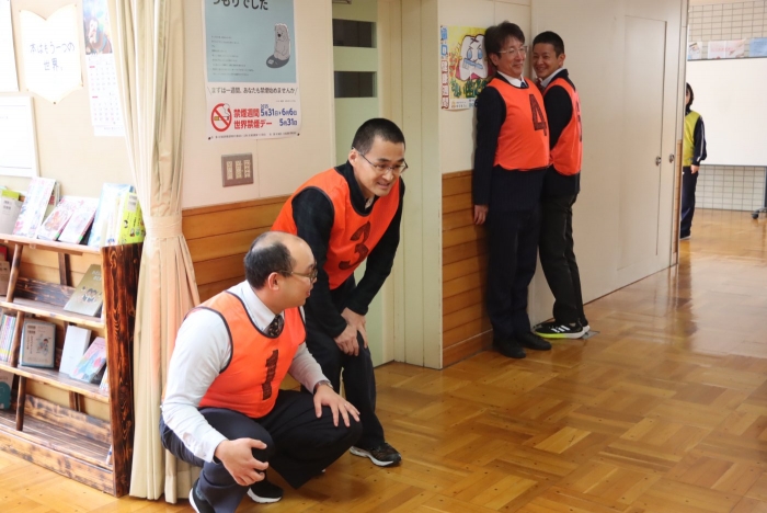 先生方もモニタに写らないように必死にかくれます