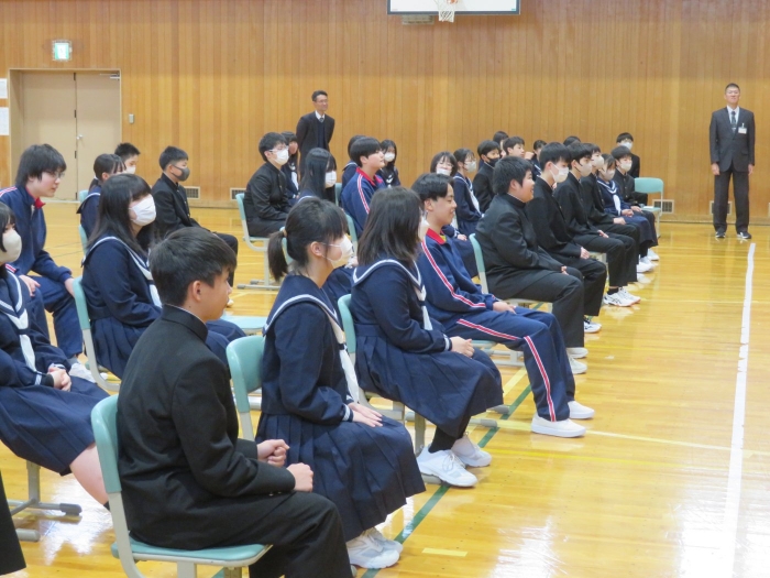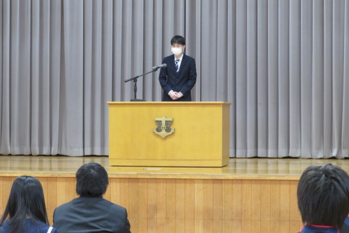 3年生はGWの過ごし方について、後半のGWはどのように過ごすかを、生徒や先生方にに問いかけていました。祝日が続く1週間なので、普段できないことをして、有意義な時間を過ごしてほしいと述べていました。