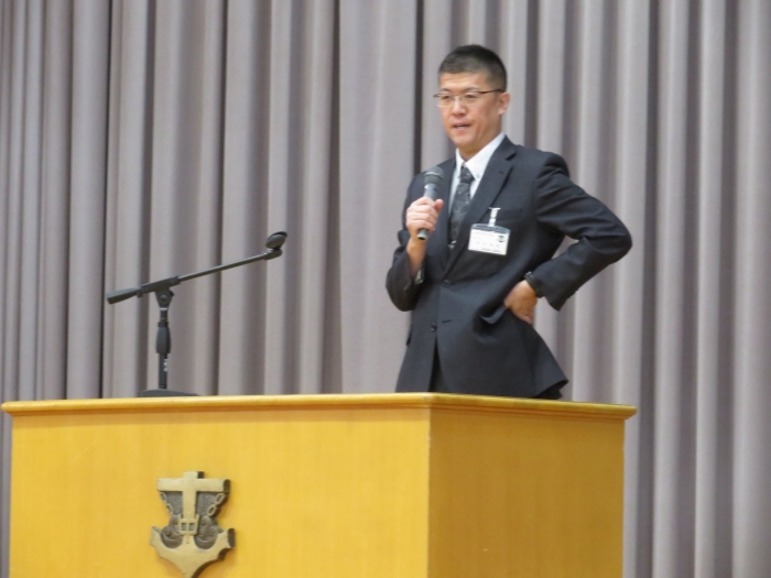 全校朝会C 実習生紹介、スピーチ、生徒指導部から