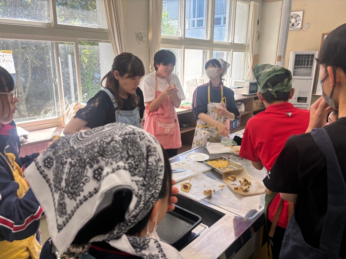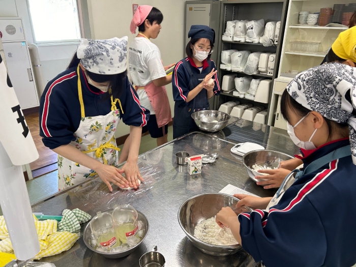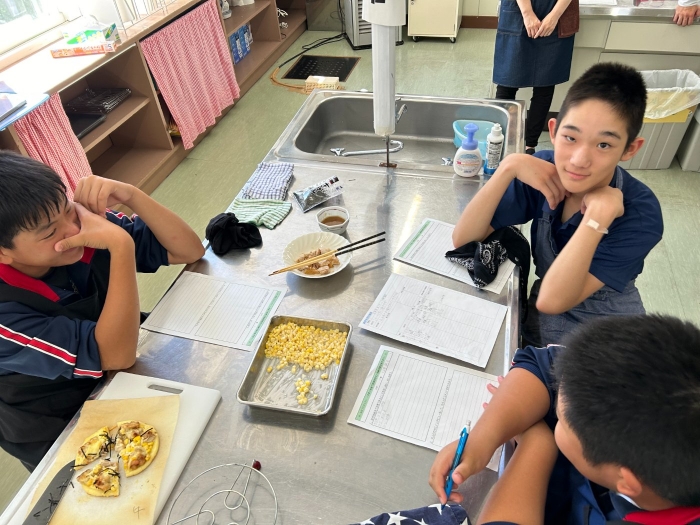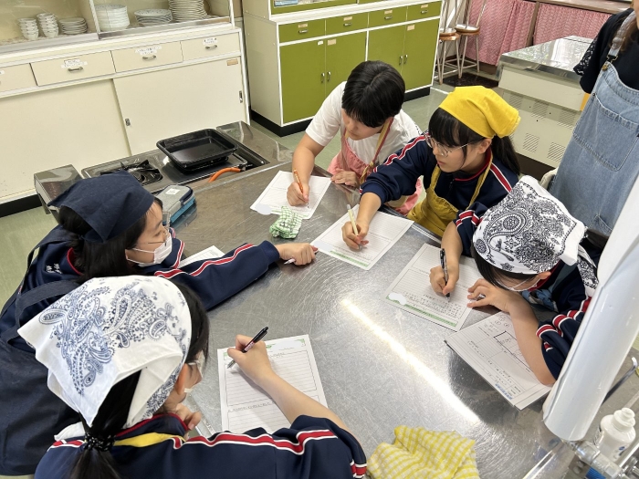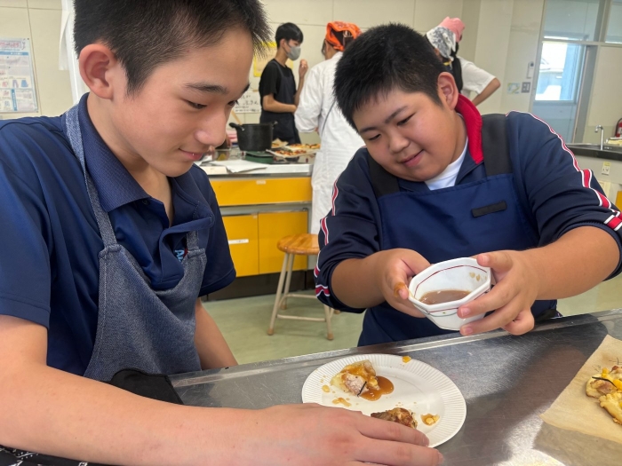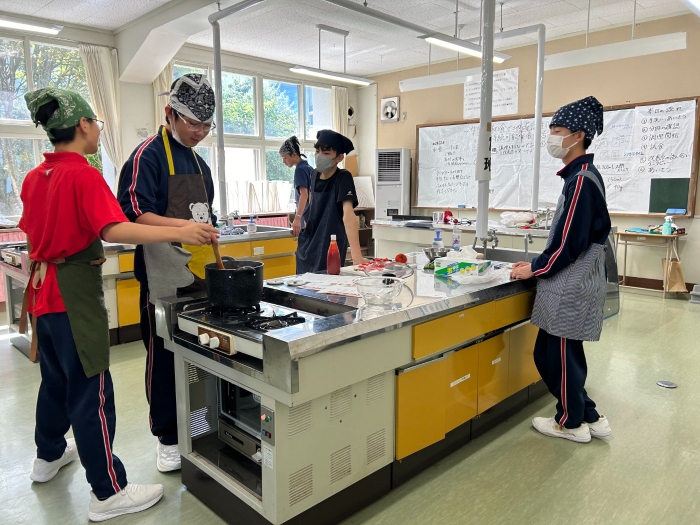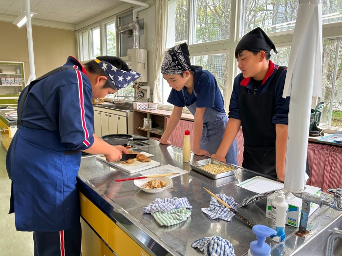 これまで乳和食の取組栄養管理士・フードマイスターお二人の講師をお招きし、今月開催される産業祭にて紹介するレシピを用いて、2年生が実際に試作、試食してみました。