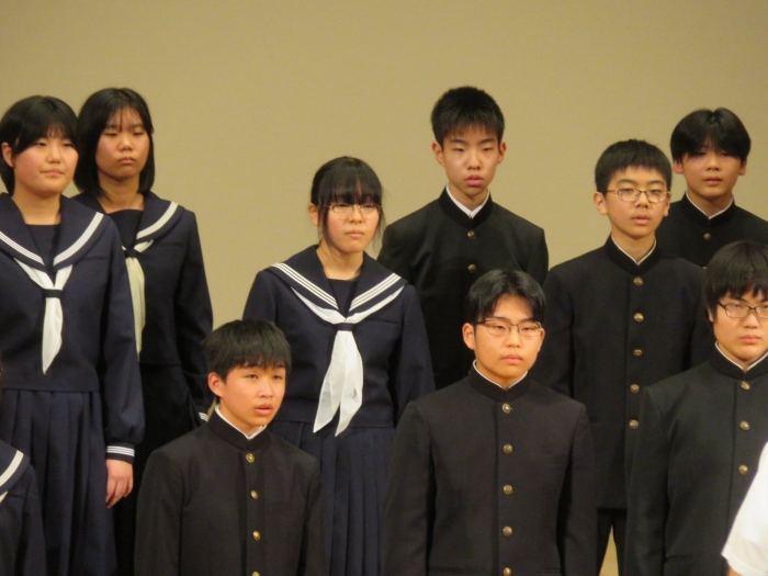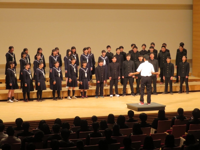 別海町生涯学習センターみなくるにて第43回別海町小中高校合同音楽祭が開催され、本校生徒は今年の文化祭でも歌った「虹」を演奏しました。文化祭のときよりも更にパワーアップした歌声を披露し、聴衆の方々からは「今年も良かった」「最高だった」「感動した」などたくさんのお褒めのことばをいただきました。