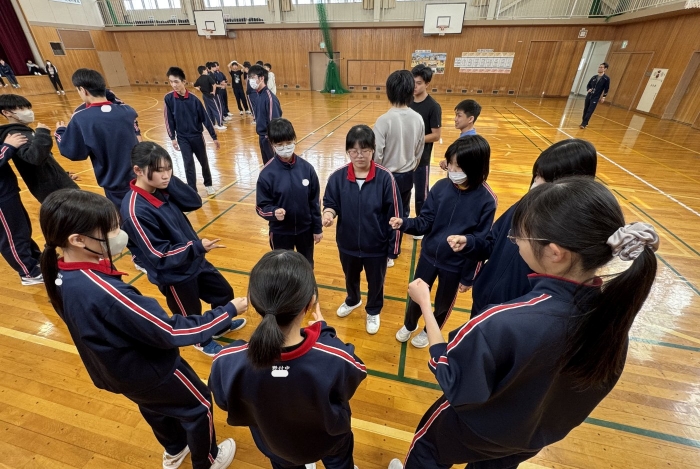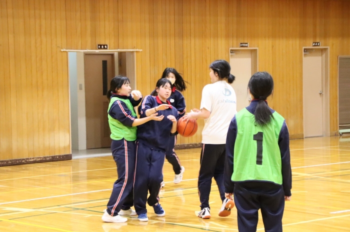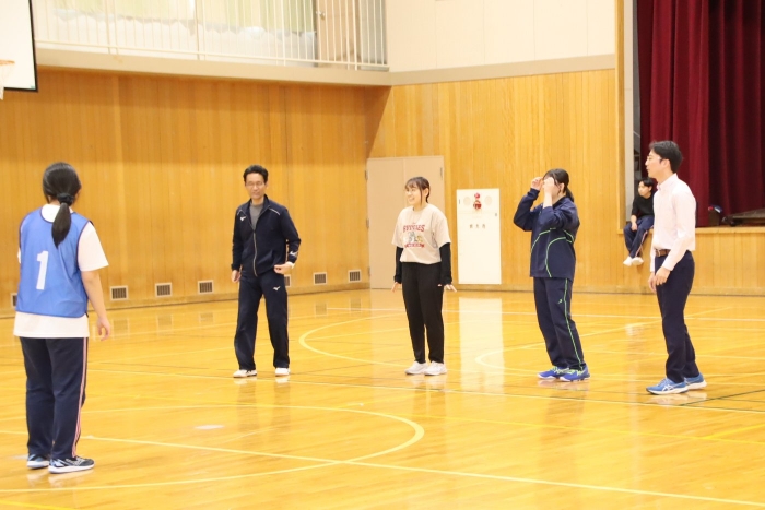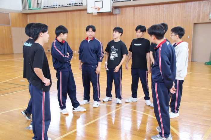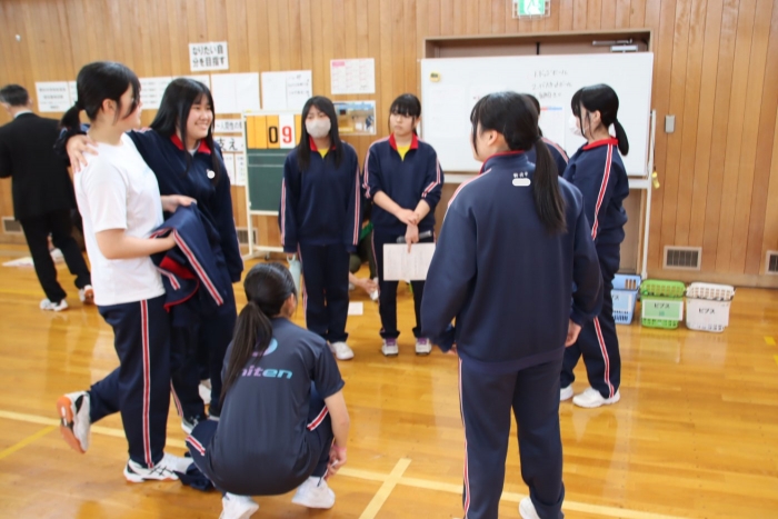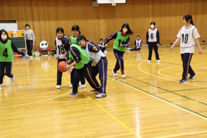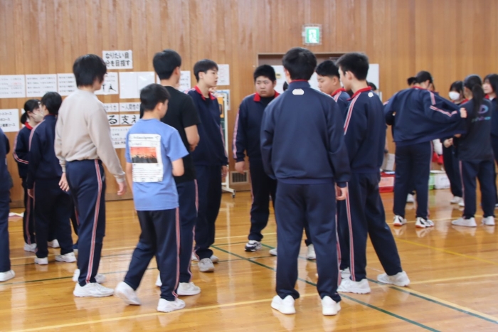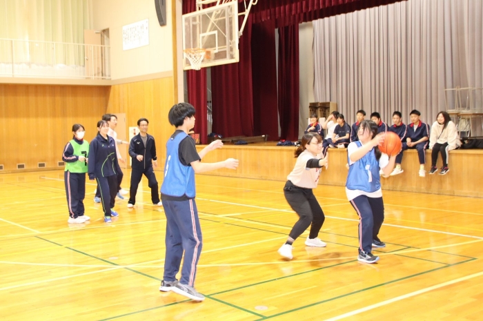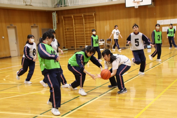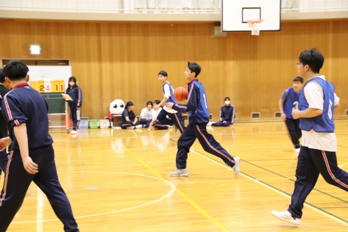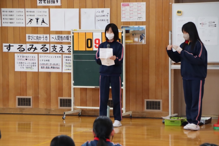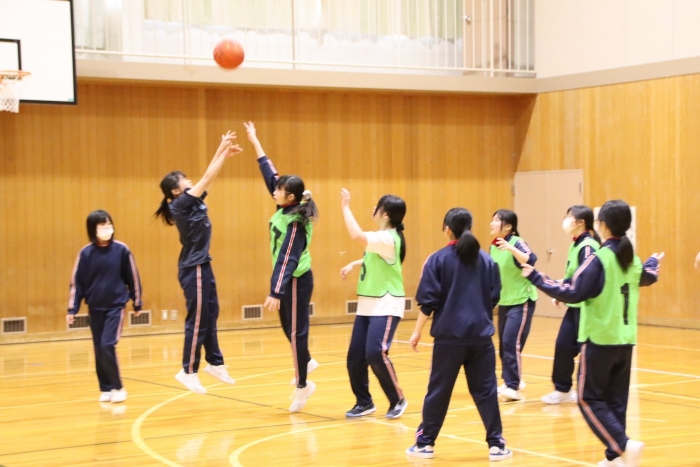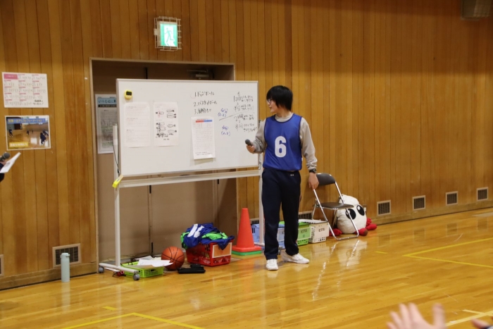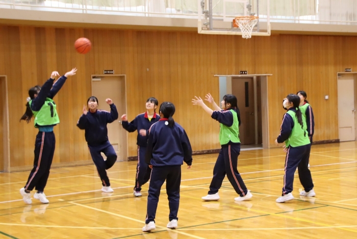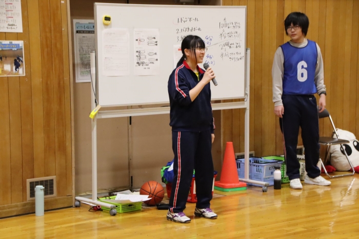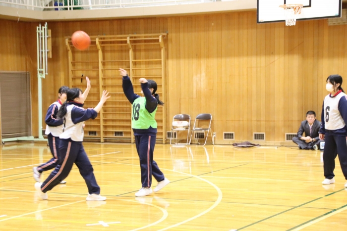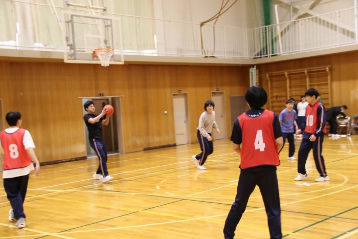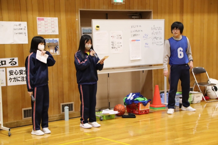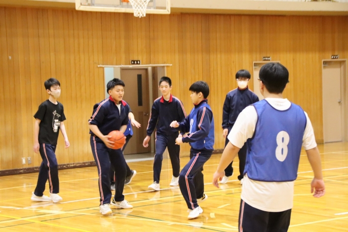球技大会②(バスケットボール) 2025年03月10日(月) 日々のできごと #野付 #スポーツ ※3月7日(金)実施 後半はバスケットボールの試合をしました。 赤組 VS 青組 男子の対戦 感慨 赤組 VS 青組 女子の対戦 1・2年 VS 3年 男子の対戦 1・2年生 VS 3年生 女子の対戦 弟をお母さんとともに参観に来た卒業生も参戦! 3年生 VS 先生&卒業生 閉会式 総合成績は・・・何とドロー! 保体委員会を代表して終わりのあいさつ 両軍とも、チームメートにパスを公平に回し、積極的なシュートを狙う姿が印象的でした。面白いプレーや好プレーが続き、とても見応えがある球技大会でした。