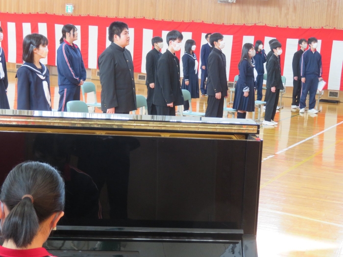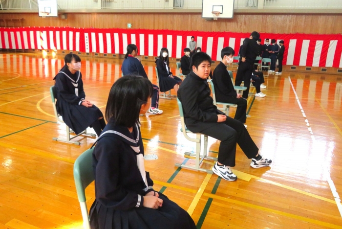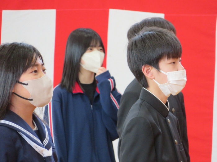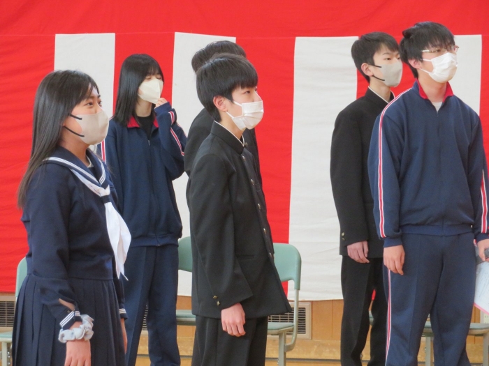 3年生が卒業し、座る間隔も広がって少し寂しい感じがしましたが、1・2年生の元気な笑顔と大きな歌声で、その寂しさも吹き飛び、いつもどおりの野付中が再開しました!