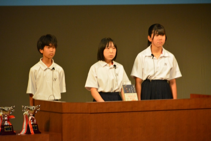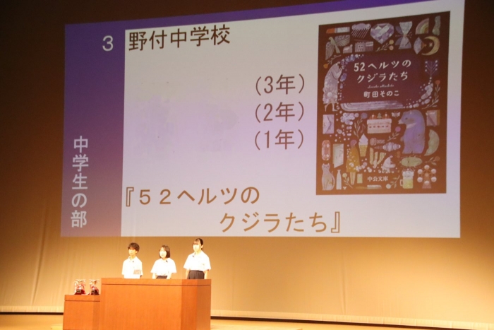 本校からは3名が出場し、緊張する中、「52ヘルツのクジラたち」作:町田そのこをおすすめ本として紹介しました。原稿に見入ることなく、観衆を見て、堂々と発表する姿はとても立派でした。この日に向けて取組んできた3名の代表者の皆さん、ご苦労様でした。また、運営頂いた担当者の皆様、そして来場いただいた保護者をはじめとする皆様に深く感謝を申し上げます。