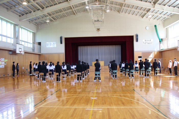 最後は『合唱』についてスピーチです。「自分から楽しまないと合唱は楽しくない」「上手くならない」後輩たちに語り掛け、3年生として最後の全校合唱にかける思いが伝わってきた発表でした。