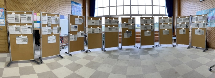 新聞を読むことで社会への関心の高め、社会の課題について知り、家族とのコミュニケーションをとり、考えを深め、意見をまとめて表現する力を育成することがこの課題のねらいです。ホールにはまだまだたくさんの素晴らしい作品がありました。