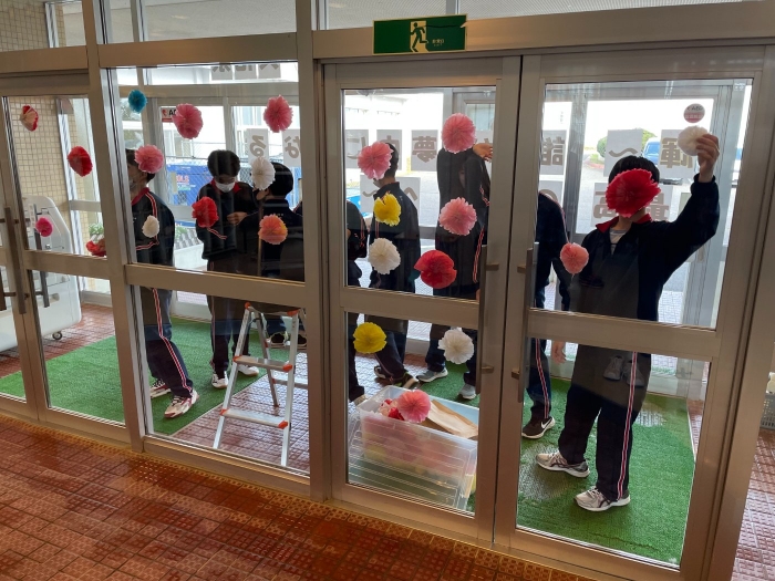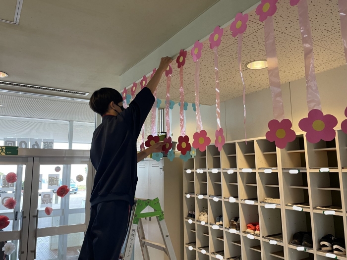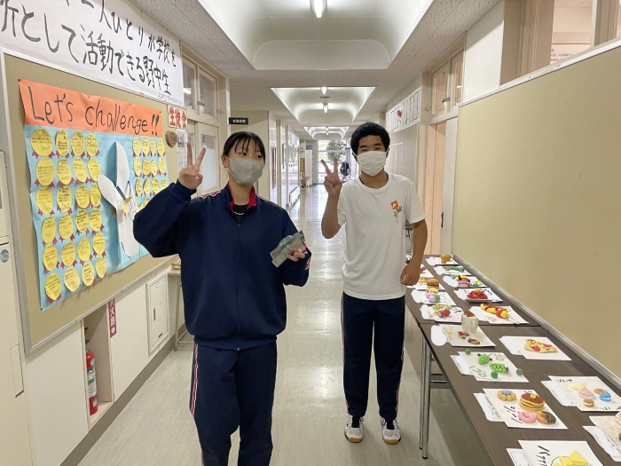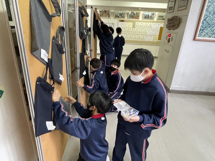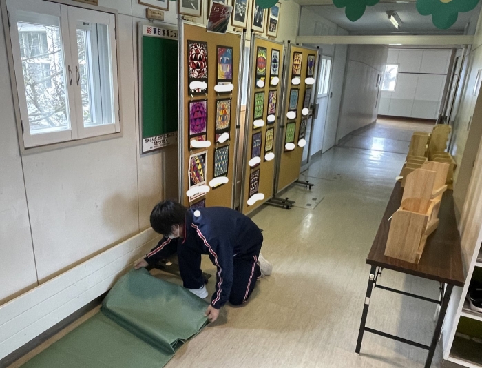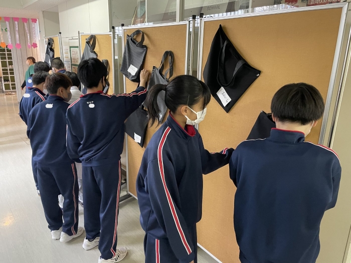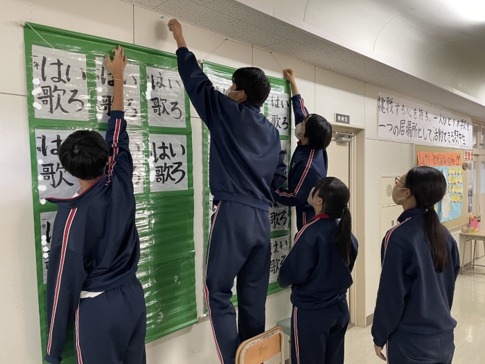 翌日の文化祭開催に向け、今日は委員会ごとに教科の作品の展示作業を行いました。