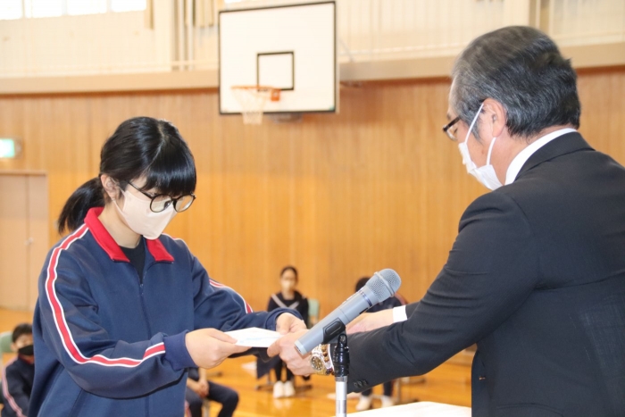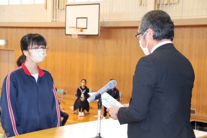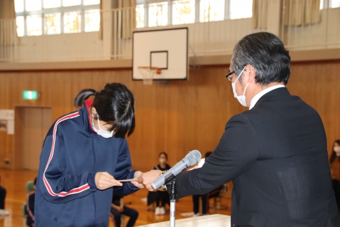 続いて新生徒会役員の任命式を行いました。これからは2年生と1年生でこの学校を引っ張っていきます。