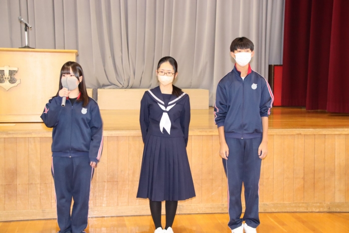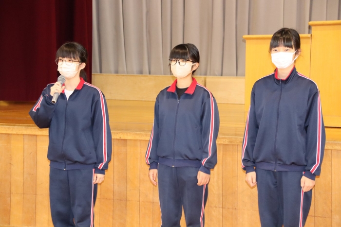 これまで生徒会をはじめ、3年生は立派にこの学校を盛り立ててくれました。これからはその背中を見て育った1・2年生がきっと伝統を受け継ぎ、頑張ってくれることでしょう。3年生の皆さん、本当にありがとうございました。安心して受験勉強に励んでくださいね。