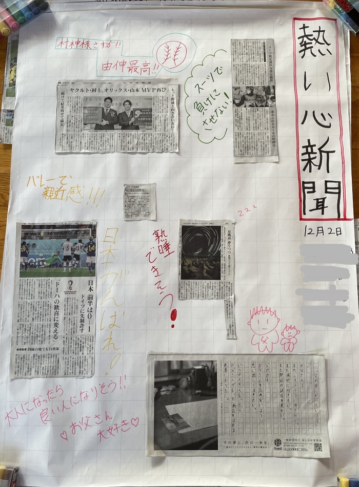 NIEは読み書き能力を向上させることを目的としていますが、今回のまわしよみ新聞はそれだけでなく、相手の話に傾聴してリアクションする力、協働して作業する力も必要とし、この活動を通じて、コミュニケーション能力の向上にも大きくつながることが実感できました。