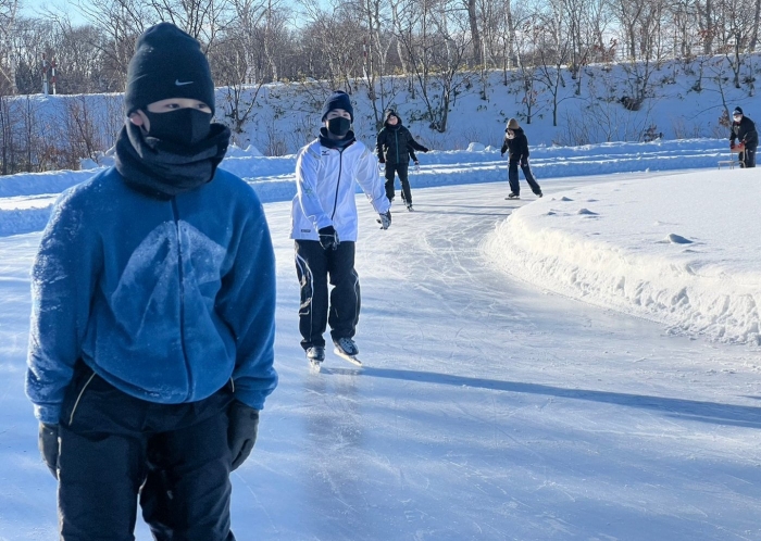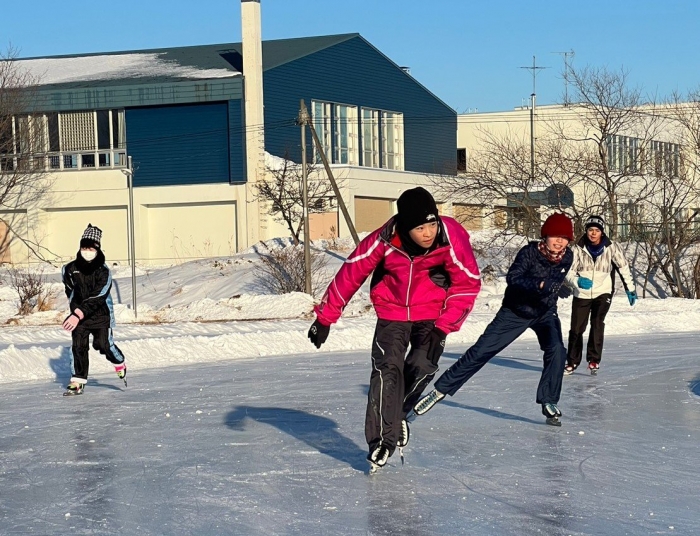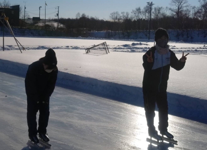 昨日の雪で閉ざされていたスケートリンク… 本日午後からのスケート授業をあきらめていたそのとき!リンク造成メンバーの方々が仕事の合間をぬって除雪してくださり、何とか滑ることができる状態としていただきました。5時間目は2・3年生、6時間目は1年生が滑走し、みんな久しぶりのスケート授業に一生懸命取り組んでいました。