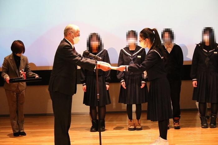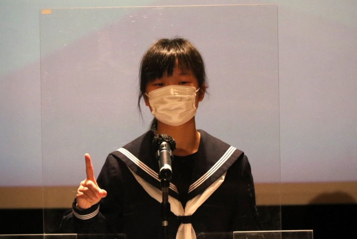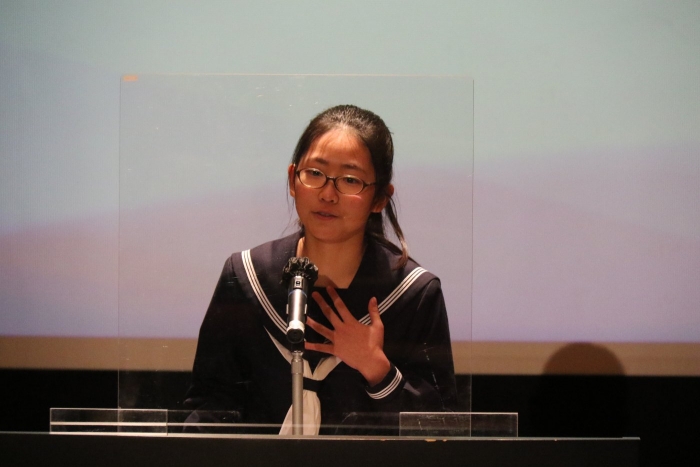 1年生ながら堂々と発表したT.Rさん。今回の入賞は果たせませんでしたが、次年度につながる素晴らしい内容の主張でした! お疲れ様でした。また、受験勉強で忙しい中何度も練習を重ね、見事最優秀賞に輝いたT.Kさん、本当におめでとうございます!