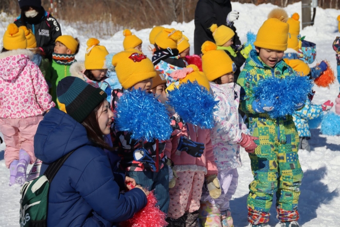 何と!野付幼稚園の子どもたちが応援に来てくれました