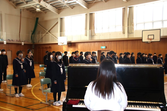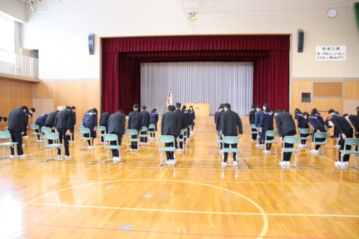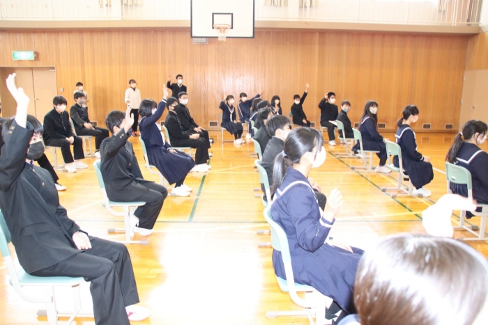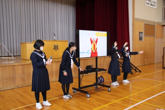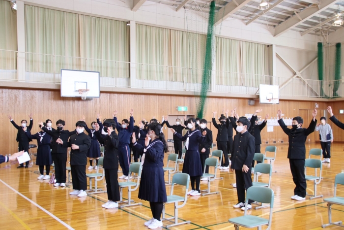 単に話を聞くだけでなく、「参加型」にするなど、生徒たちの主体的な工夫が見られた全校朝会でした。あっという間に時間が経ち、みんなは慌てて1時間目の準備に向かっていきました。