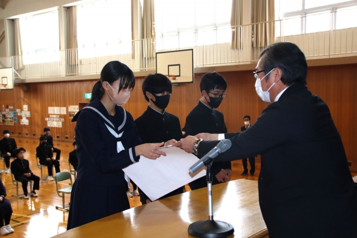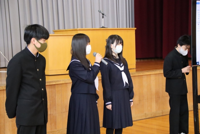 本日は全校朝会Bがありましたが、大分寒さも弱まり、体育館が温まるのも早くなってきました。今日はスピーチ、表彰、委員会から・・・と内容が盛りだくさんで、多くの生徒が活躍しました!