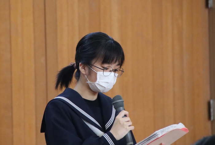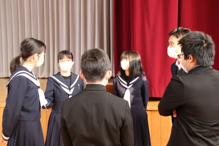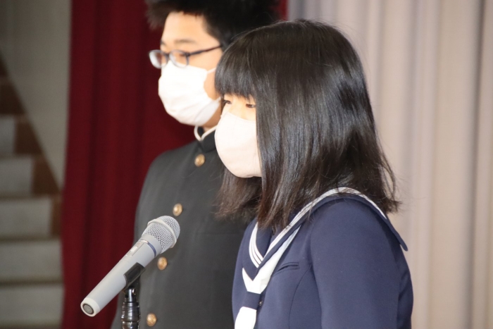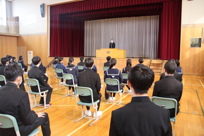 生徒会が校長先生にお願いしたお題は『3年生に伝えたいこと』。今週末には卒業式もあることから、主に3年生に向けて、「人生は選択・決断の連続だが、何を選んだとしてもそれは正解。たとえそれが失敗だとしてもきっと今後はプラスとなるので、これからも色々なことに挑戦し、人生を楽しんでほしい」というお話でした。