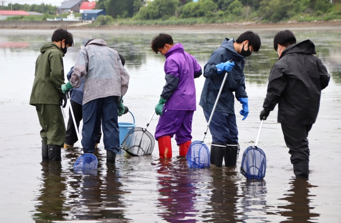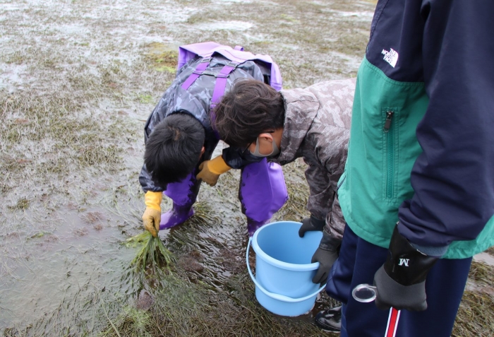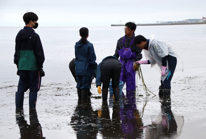 アマモは光合成で大量の二酸化炭素を吸収し、海へたくさんの栄養を与えます。また、海の浄化作用を担い、きれいな水質を保ってくれます。尾岱沼が豊かな海産物を得られるのもアマモのおかげかもしれません。このように自分たちの生活に関連付けて学ぶことができた1日でした。