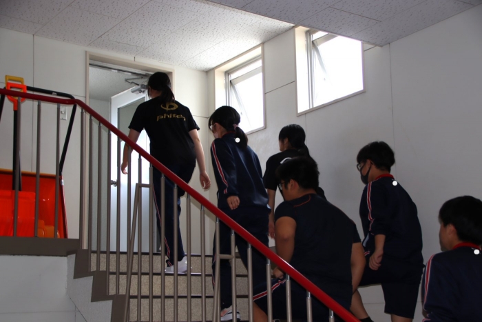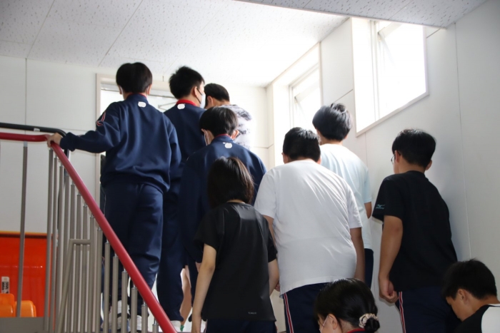 今日9月1日は北海道シェイクアウトの日でしたので、本学校区は10:00より幼小中一斉に避難訓練を行いました。地震からの大津波警報を想定し、まずは机の下に隠れて頭を第一に守り、その後本校屋上へと避難しました。