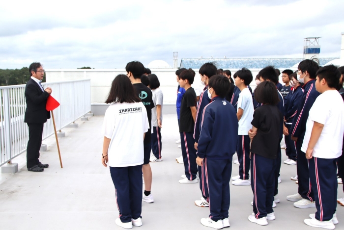 普段屋上に来る機会もないので、教室に戻る前に少しだけ景色を楽しむ時間を設けました。生徒たちは屋上からの景色をゆっくりと堪能し、授業に戻っていきました。