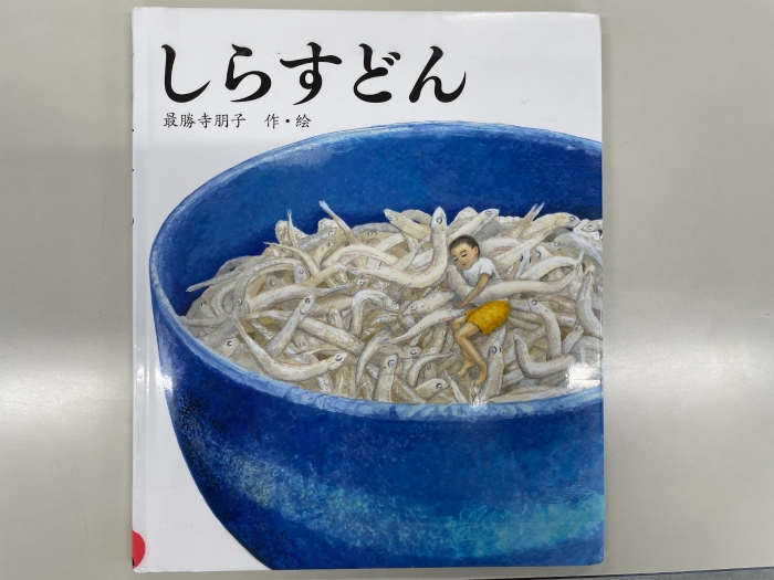 お母さんがりょう君を呼んでいます。まだ遊んでいたいのにご飯の時間なのです。いやいやながら食べるりょう君。食べ終わって食卓を立つと、どんぶりがりょう君を呼び止めました。その声に振り向くと、どんぶりにはしらすが残っていました…。