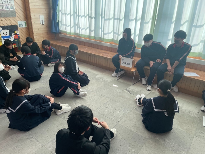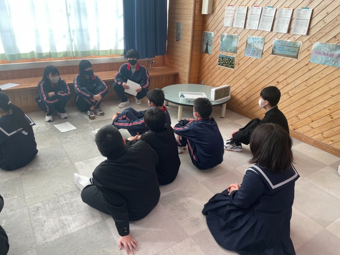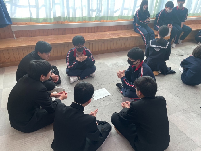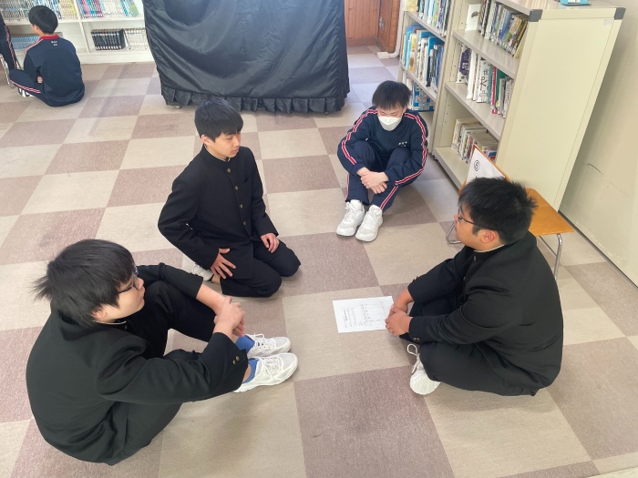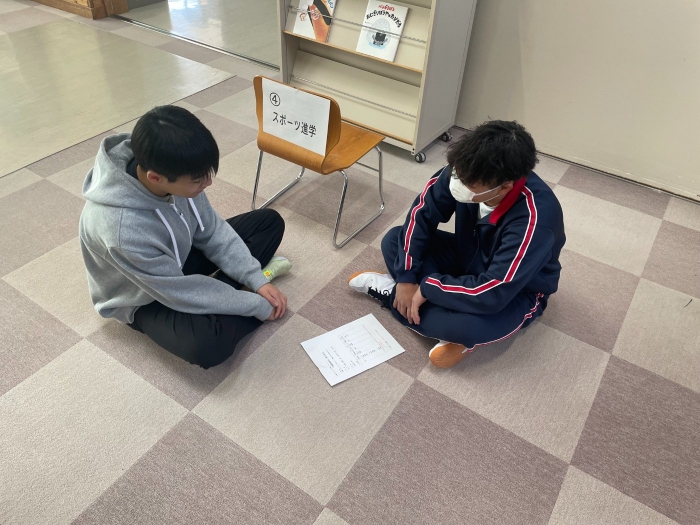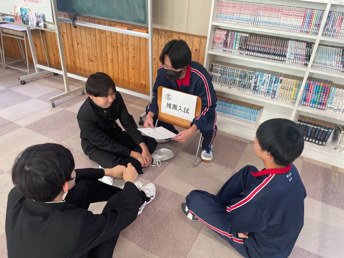 今日は朝読書の時間を使い、進路座談会を開催しました。受検を終えた3年生が2年生に進路選択に関する情報や今後の学習に対する心構えなど、高校名や推薦・面接などジャンル別に説明してくれました。
