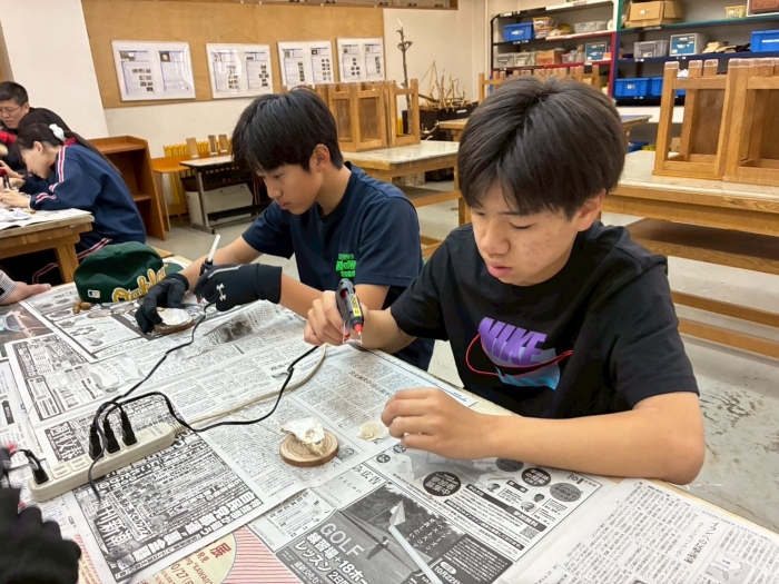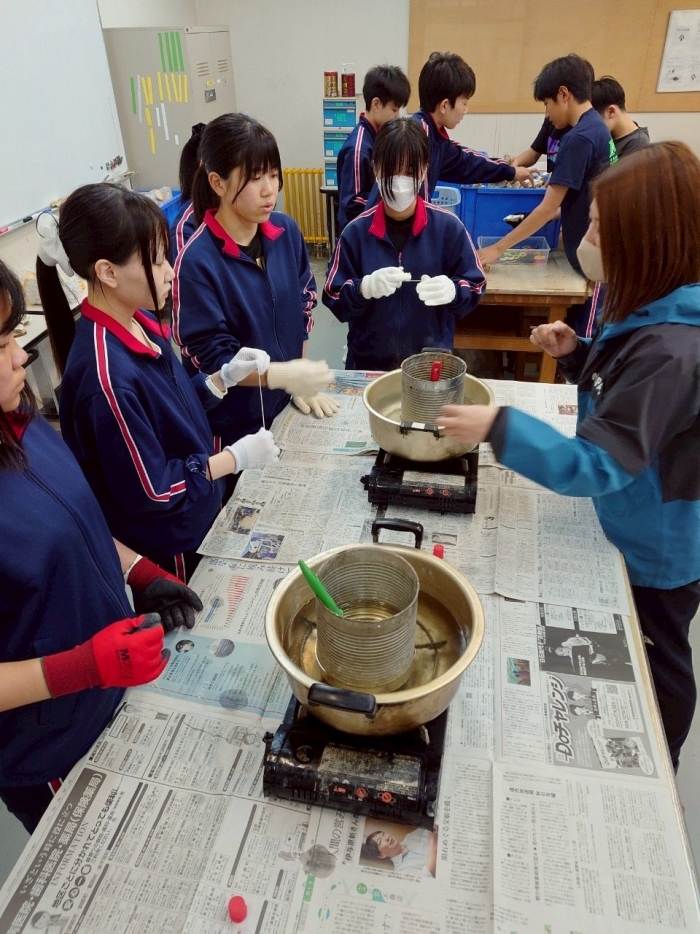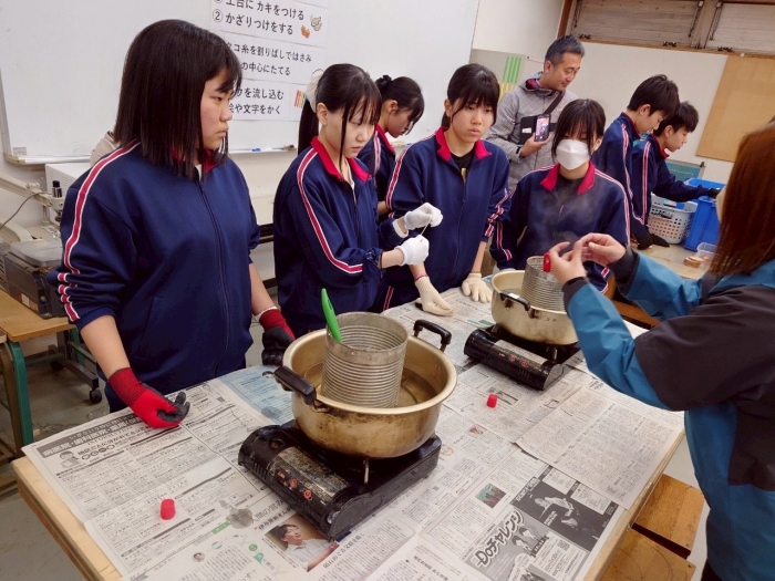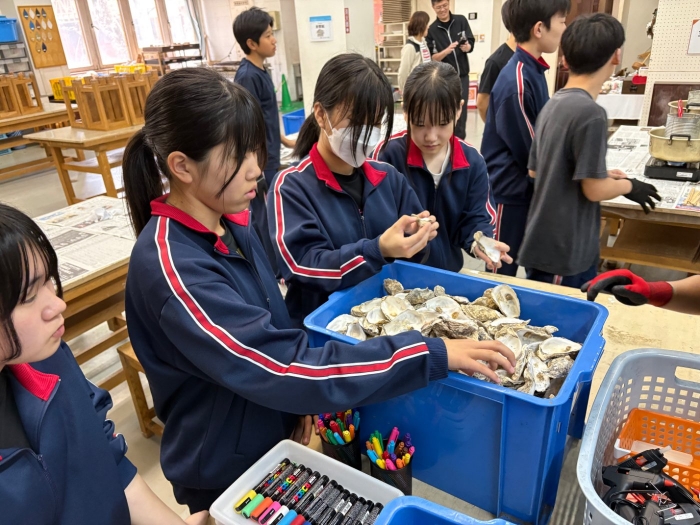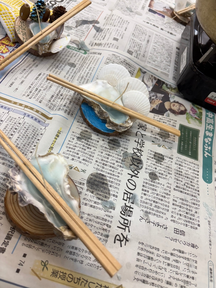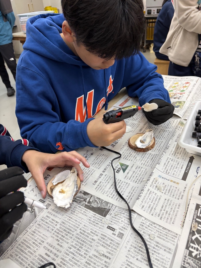 牡蠣の殻を使った牡蠣キャンドルを製作しました。一人一人の感性が光ります。