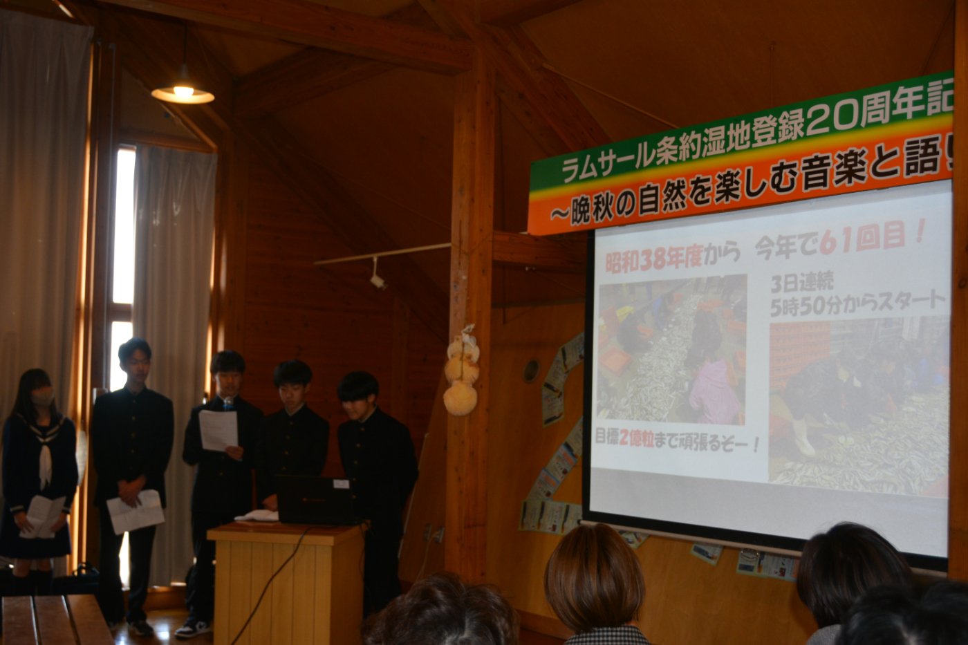11月9日(日)野付半島ネイチャーセンターにて「ラムサール条約湿地登録20周年記念事業」が開催されました。豊かな野付の教材や人材から学ぶふるさとキャリア教育「野付学」について野中生の5名の皆さんが発表しました。
