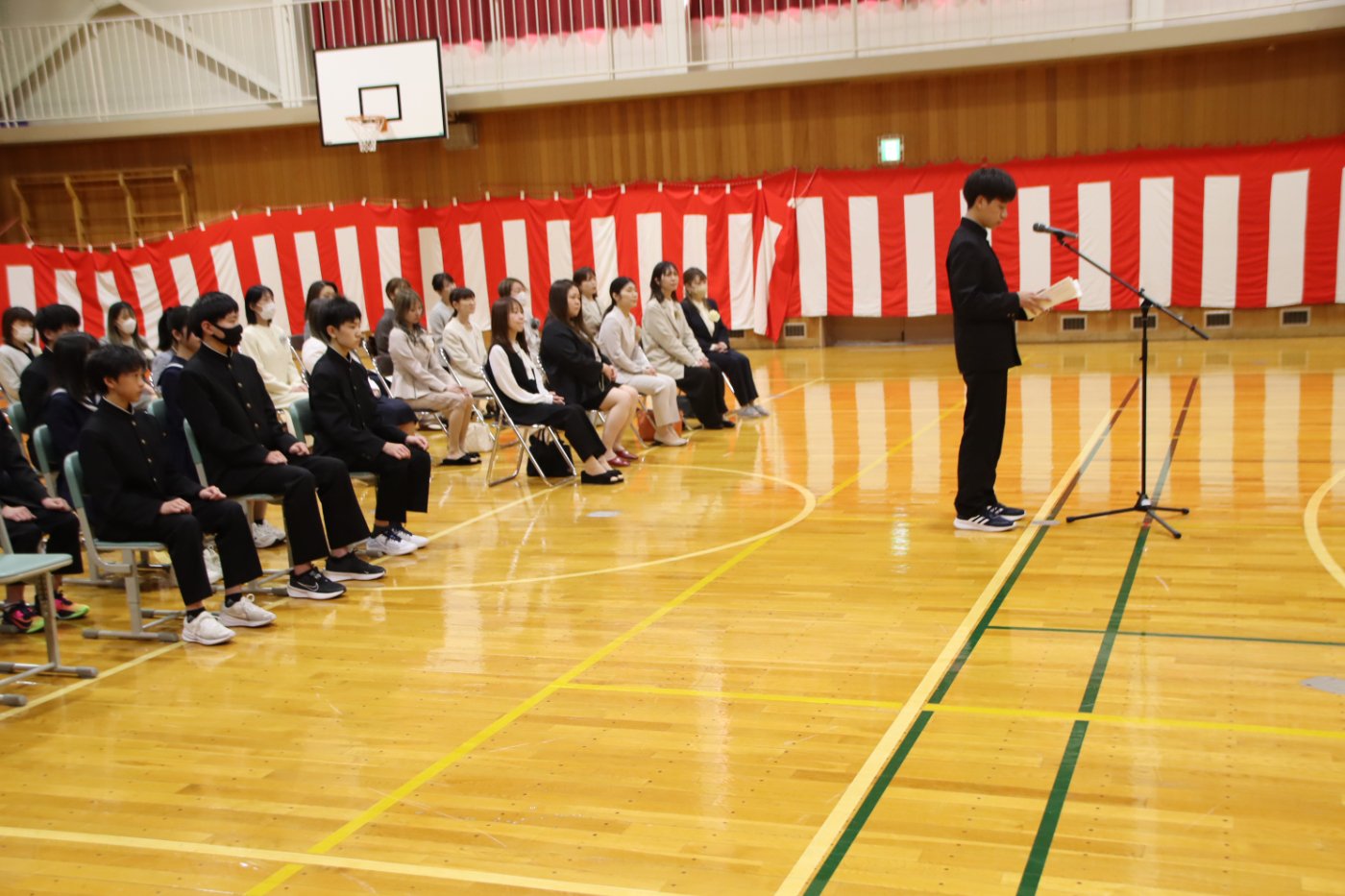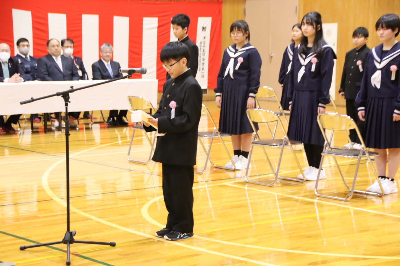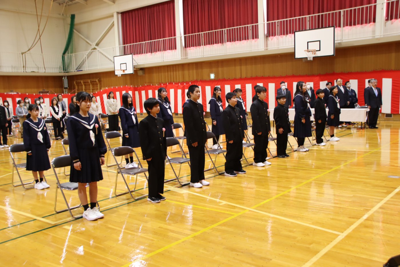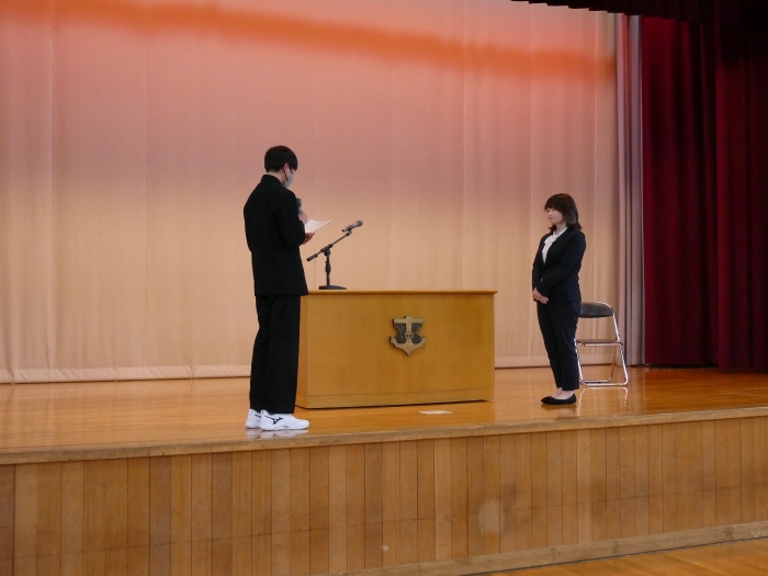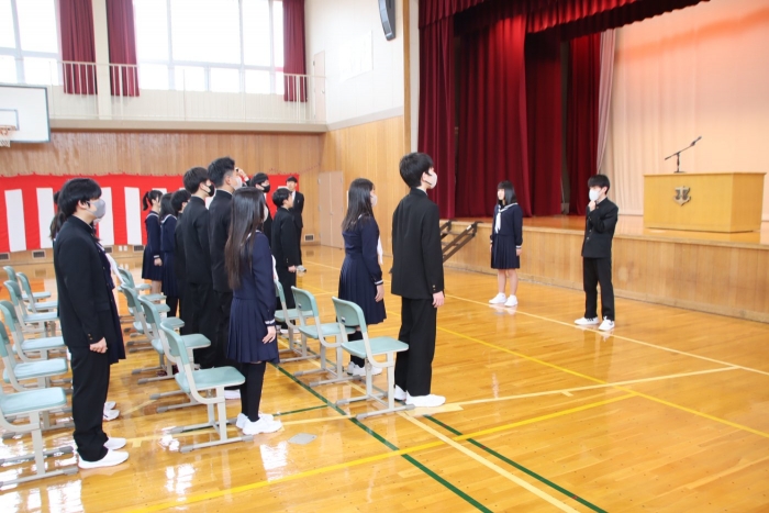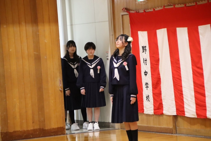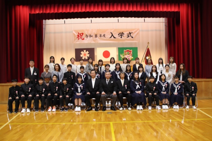 【野付中】スタートの日 2026年04月06日(月) NEW 学校に子ども達が帰ってきました。令和8年度のスタートです。 着任式、始業式、そして入学式とあわただしい1日でしたが、新入生は多少の緊張にも負けず精一杯に、2・3年生は自分で考え主体的に行動する姿がとても素敵でした。 全校生徒38名全員そろいました。野付中の合言葉『わくわくPLUS〈Positive/Link/Up/Smile〉』を胸に、一人一人が自己実現を叶えていきましょう。 新入生の皆さん、ご入学おめでとうございます。