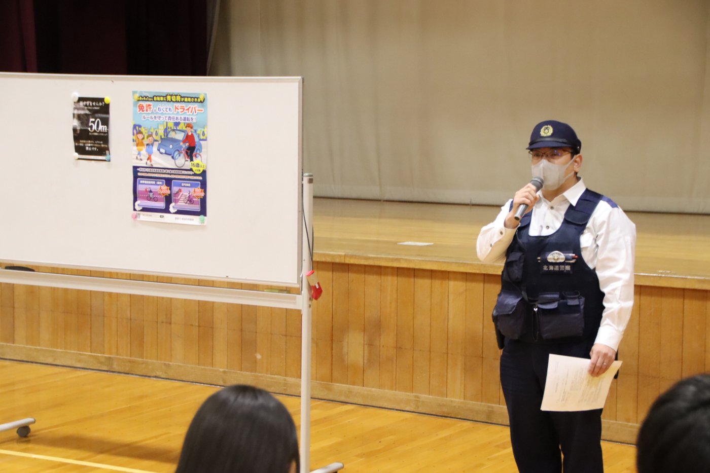家庭学習、野付学についてのガイダンスと、交通安全教室を行いました。