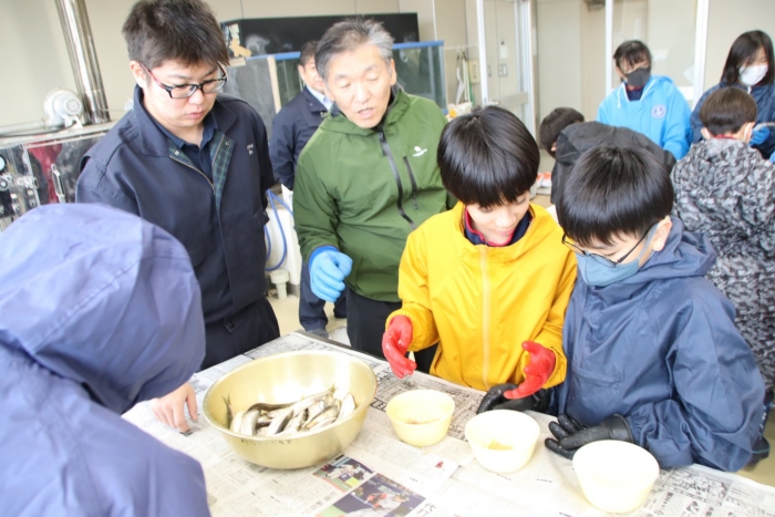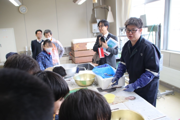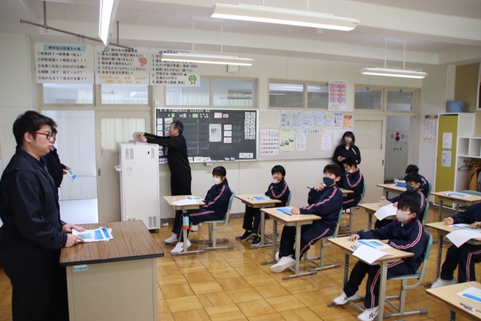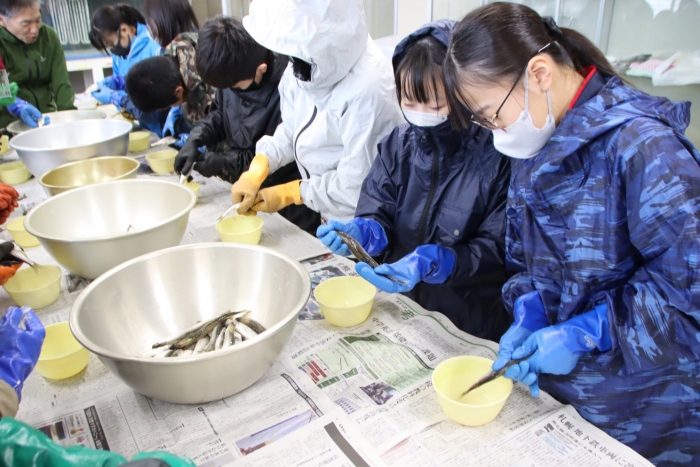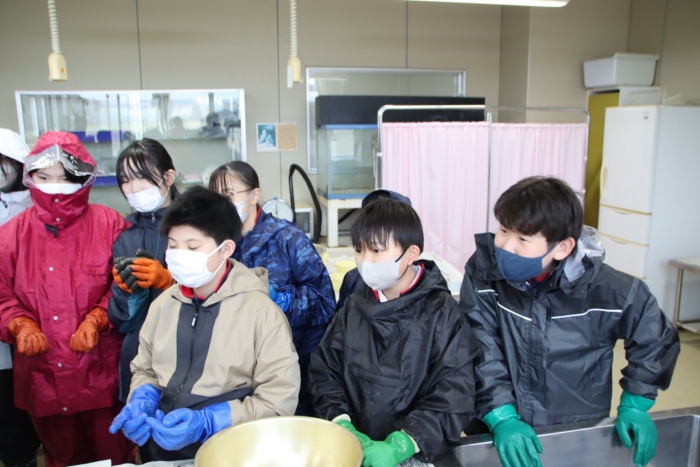 【野付中】1学年 チカ採卵実習事前学習 2026年04月10日(金) NEW 野付漁協からお二人の先生をお招きしてチカ採卵実習の事前学習を行いました。 別海・野付の資源を守り育てたり、地産地消したりする体験を通して、地域の産業について理解を深め、 地域に愛着をもって行動しようとすることが目的です。 60年以上続く野付中学校伝統の社会貢献に1年生もいよいよデビューです。 初めての生徒もいれば、ご家庭のお手伝いで経験のある生徒もいます。頼もしいです。 4/13(月)5:50尾岱沼漁港集合!皆さんの頑張りに期待しています!