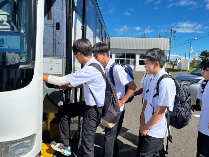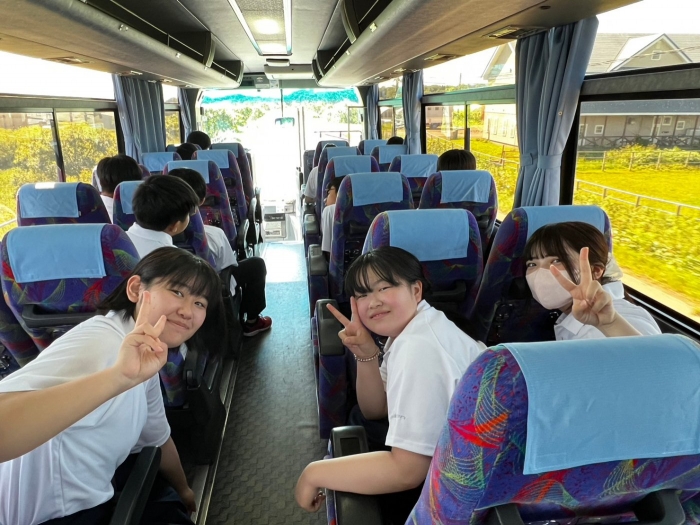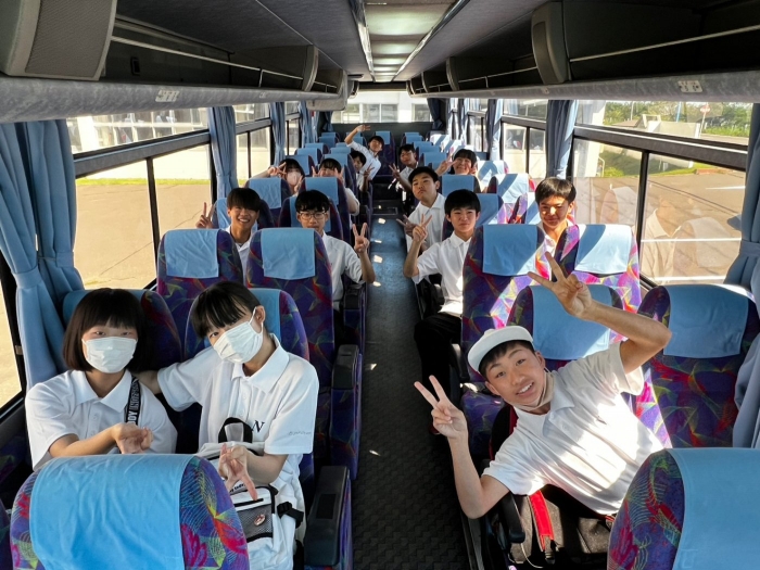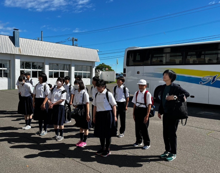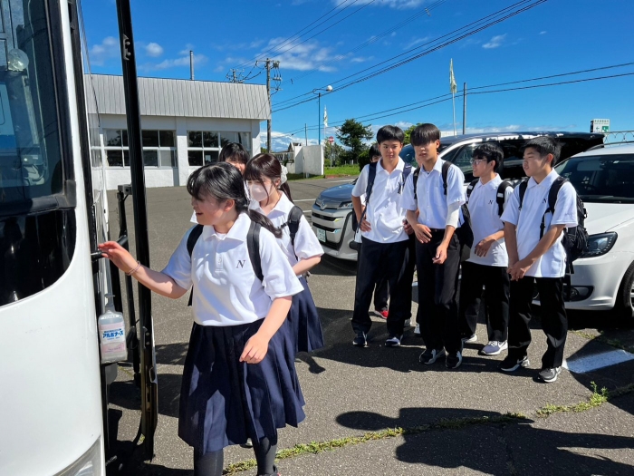 北方少年少女塾① 2023年08月18日(金) 本日2年生は、「北方少年少女塾」で根室市へ出かけています。北方領土について正しい知識と理解を深めることが目的です。気温は高いですが、良い天気に恵まれ、みんな元気な笑顔でバスの乗り込んでいきました! 空は快晴! ポロシャツも大活躍! バスに揺られ1時間半、スワン44(道の駅)で休憩後、北方四島交流センター二・ホ・ロに向かいます。※②に続きます