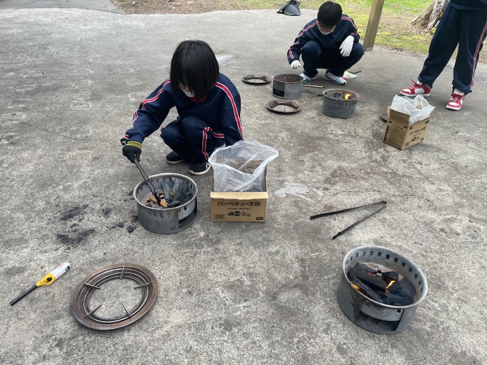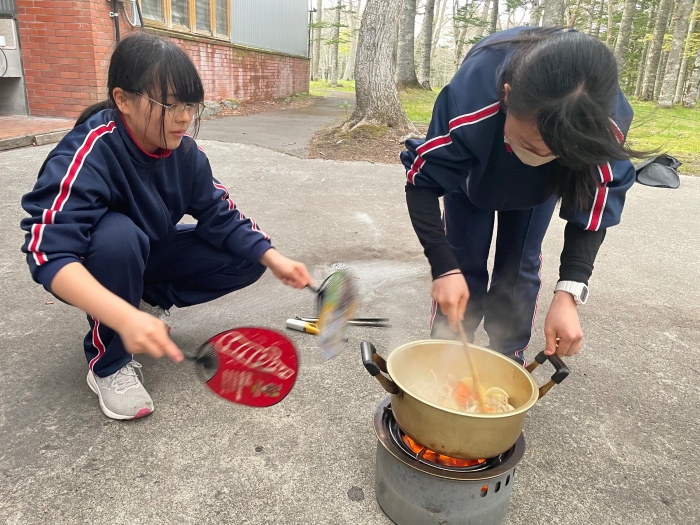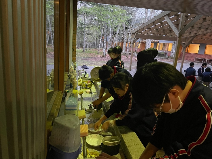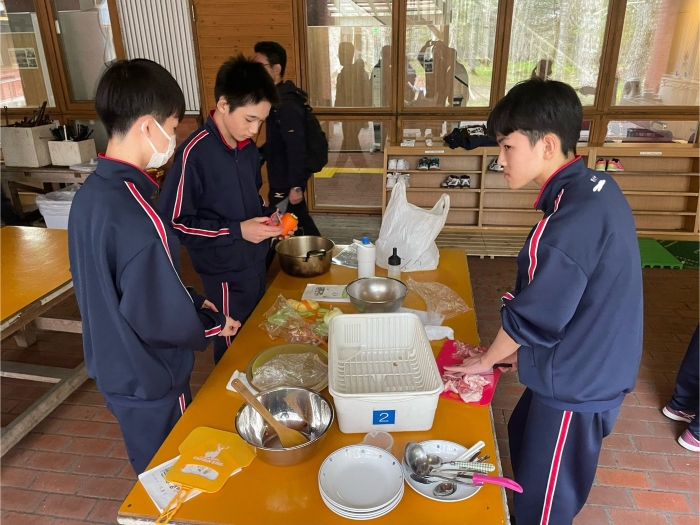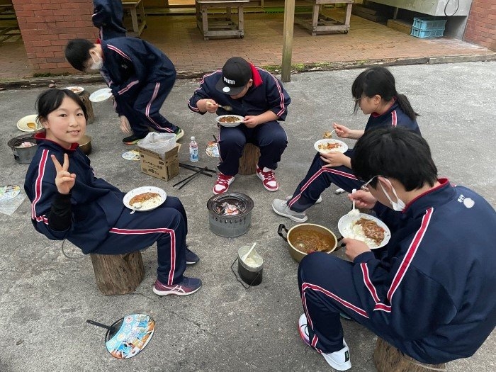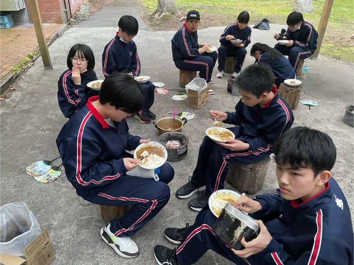 宿泊研修③ 野外炊飯•夕食タイム 2024年05月16日(木) 行事 調理と火おこし、それぞれの担当に別れ、カレーづくりと炊飯の開始です! あとはご飯が炊けるのを待つだけ 美味しく炊けるといいのですが… ご飯も炊けて、いただきます! どの班も上手くできていました 残食ゼロ! みんなよく食べます 片付けもみんなで協力して頑張りました! 予想以上に夕食に時間がかかってしまったのと天気も怪しいため、残念ながらナイトハイキングはできませんでした。これから入浴です。④に続く…