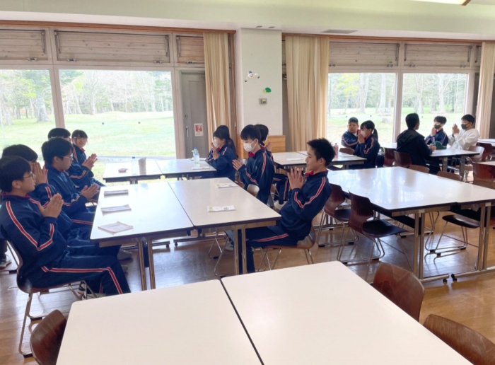 昨夜は男女とも23:00には就寝。早いうちに話し声も聞こえなくなりました。今朝は6:30起床でしたが、みんな6:00前には活動し始め、シーツを返却した後、夕食で使った食器や飯盒を片付けました。