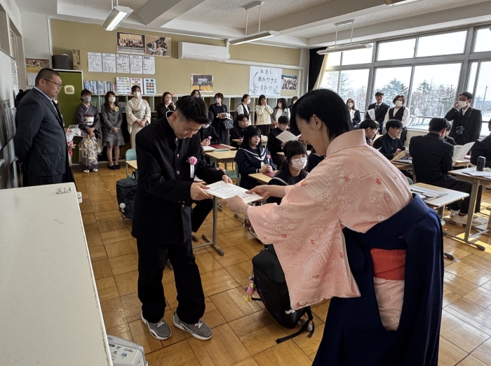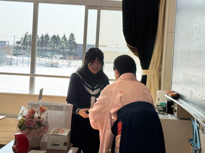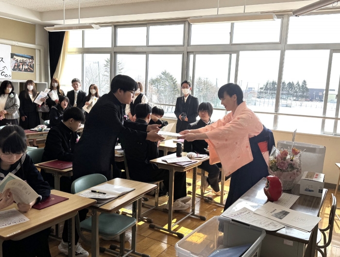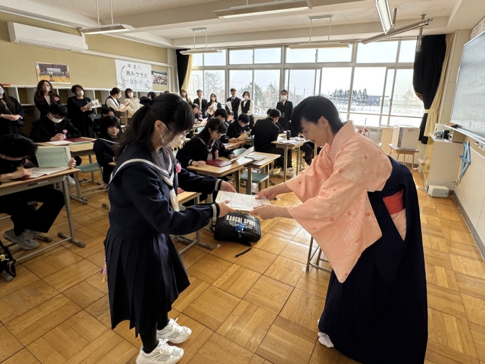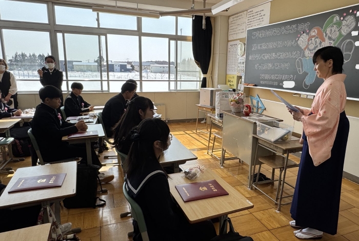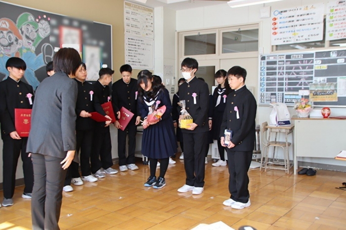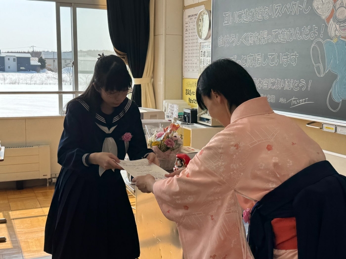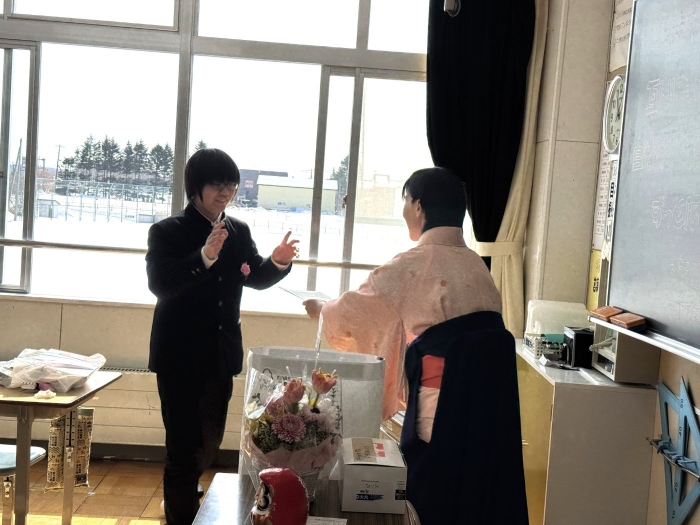 元気なパワーで野付中を明るく引っ張ってくれた3年生。とてもフレンドリーで後輩たちも親しみやすく、本当に「めんこい」存在でした。最後まで3年生らしい笑顔いっぱいの学活でした。
