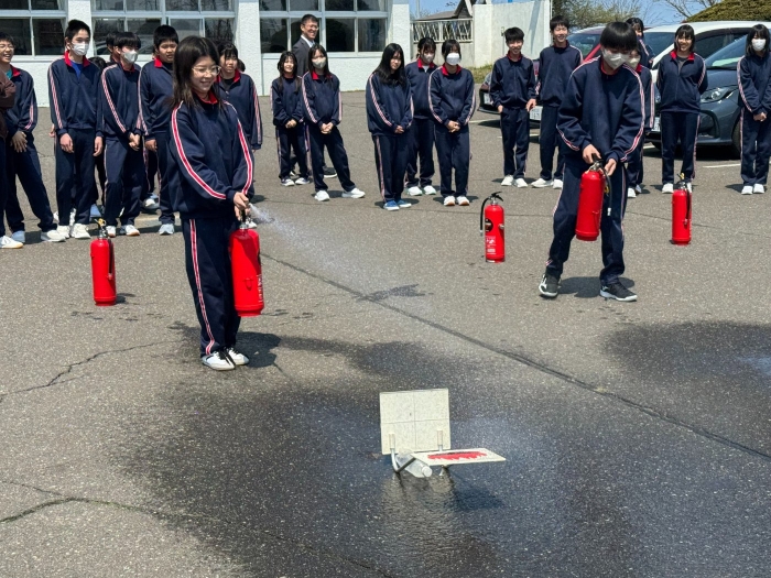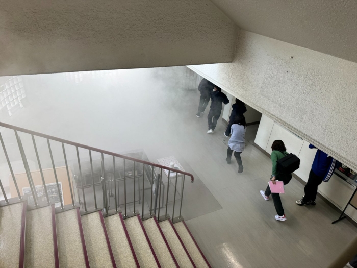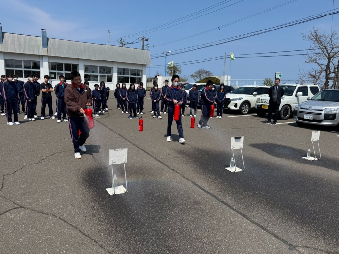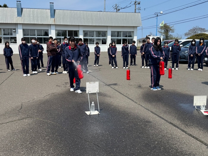 火災避難訓練 2025年05月14日(水) 行事 火災に対する避難や初期消火などの消防訓練を別海消防署のご協力のもと実施しました。 消防署への通報、スモーク体験、消火器を使っての消火体験など貴重な体験をしました。 危険を予測する能力や自分の命は自分で守る行動(自助)が身につくよう安全教育に努めてまいります。 火災で怖いのは煙です。 誰もが真剣に避難することができました。 初期消火、はじめます。