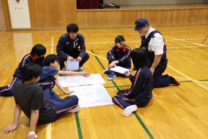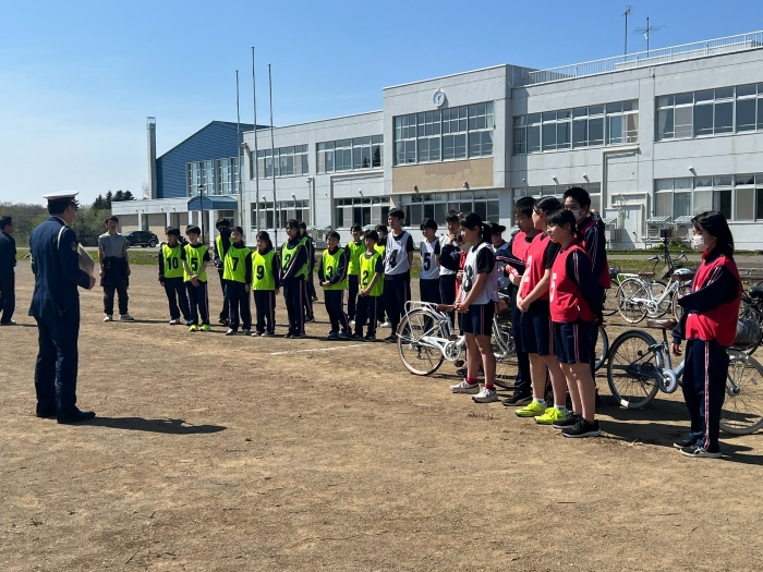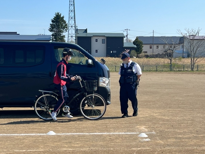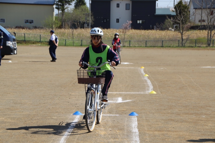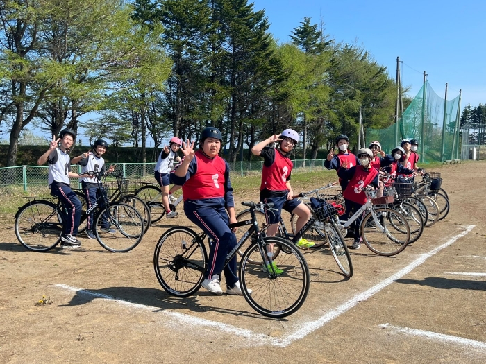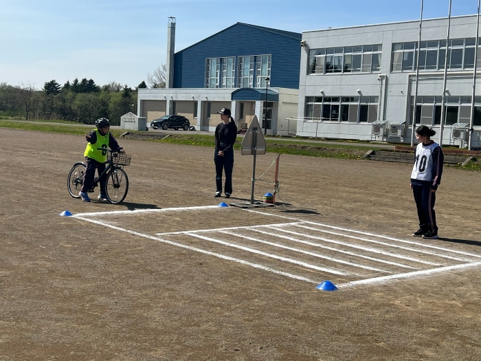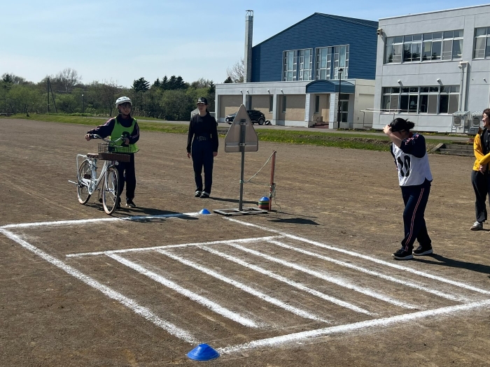 中標津警察署のご協力のもと自転車交通安全教室を実施しました。自転車点検や運転技術を試すコースの走行を行いました。また、日頃の登下校時や休日に自宅周辺で自転車に乗る時の「ヒヤリハット」体験をマップに表し、交通事故のない野付であるためにどうすればよいのかを警察官・交通安全指導員の方々を交えて話し合いました。
