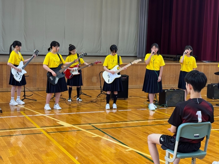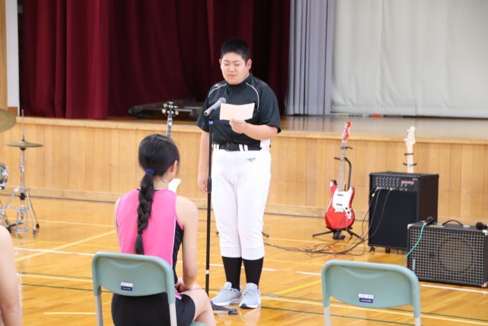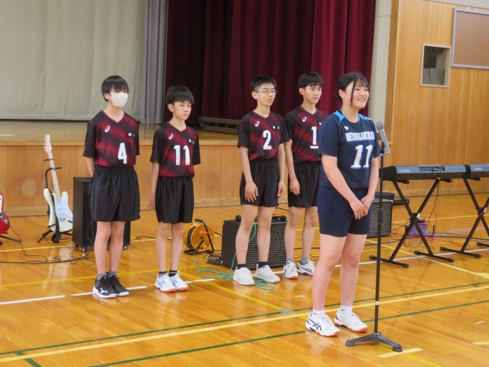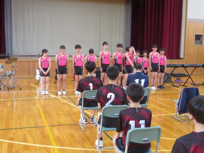 地区中体連壮行式 2025年06月06日(金) 行事 地区中体連に向けての壮行式を行いました。 日頃の練習の成果を存分に発揮してください。がんばれ野中生! 堂々と入場! 中学校生活最後の夏が始まります! 自分を信じ、 仲間を信じ、頑張ってください。 音楽部から応援の気持ちを込めて、 すてきな音楽をプレゼント ピンチの時は思い出して!「いつでもプラス言葉」