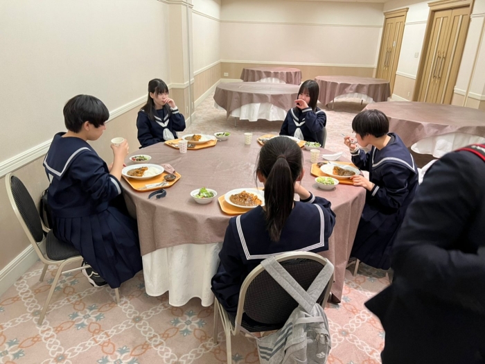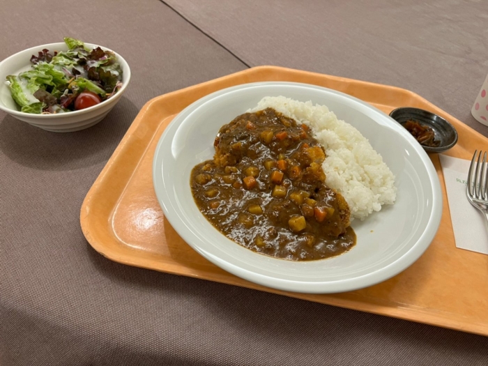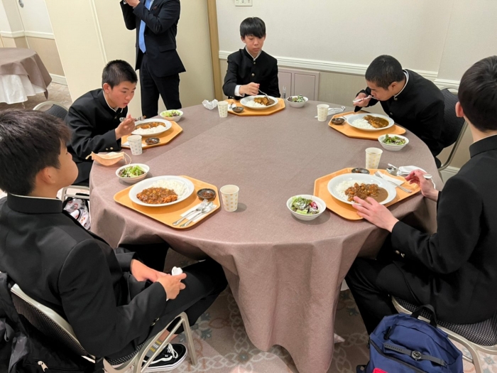 修学旅行13 2022年05月19日(木) 行事 昼食はカツカレー(いつもはルスツ定番のハンバーグカレー)で、時間も早かったためか、けっこうボリュームがあるように感じました。 そしてルスツをあとにし一路札幌へ