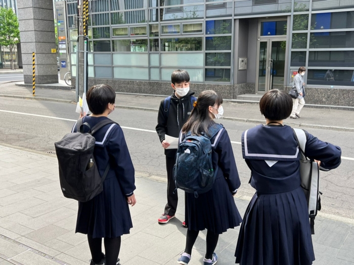 退館式も終え、上級学校訪問へ出発しま した。各グループとも地下鉄やチカホを選ばず徒歩で向かってます。さて無事に時間通り到着できるか!?