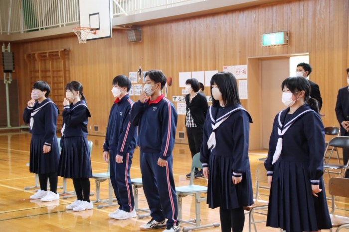 中体連壮行式 2022年06月03日(金) 行事 今日の6時間目は中体連壮行式でした。 野球部 卓球部 陸上部 バレーボール部 柔道 水泳 音楽部による応援ソング 最後は全員で野付中応援歌を歌いました。練習は嘘をつきません。それぞれがベストの結果が出せるよう心から応援しています!