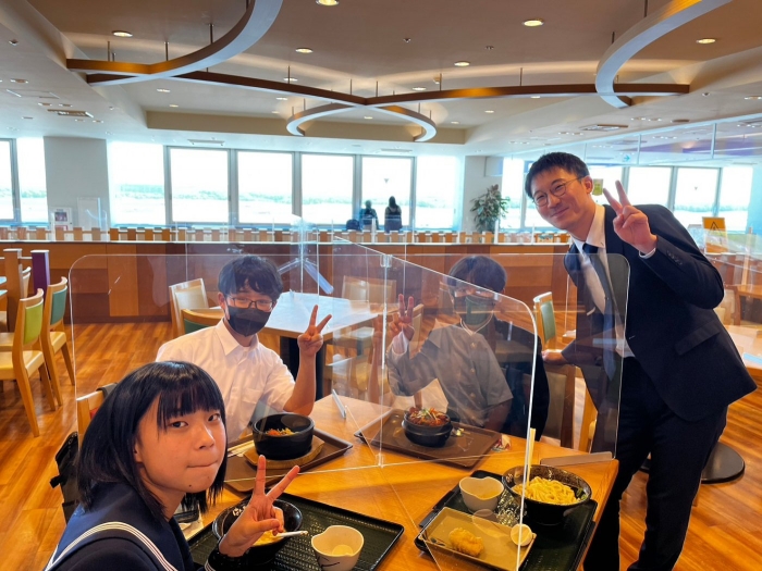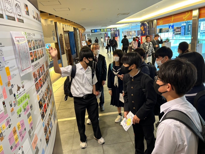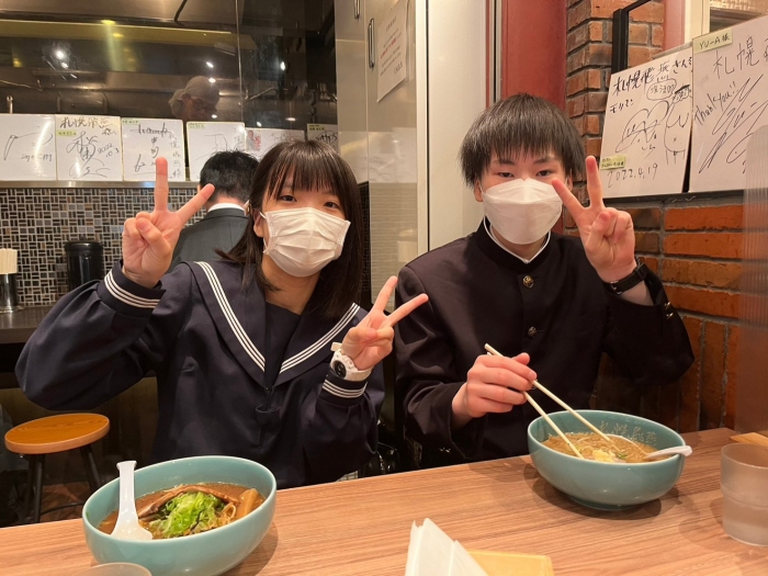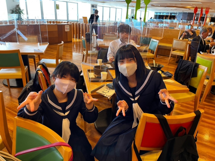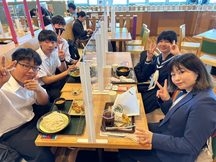 修学旅行その3 新千歳空港散策 2023年05月24日(水) 行事 新千歳空港で食事も含め、自由時間をとりました。お土産を買う班、食後のデザートを楽しむ班、ゲームコーナーで遊ぶ班など、広い空港内を歩き回りました。