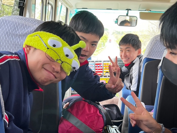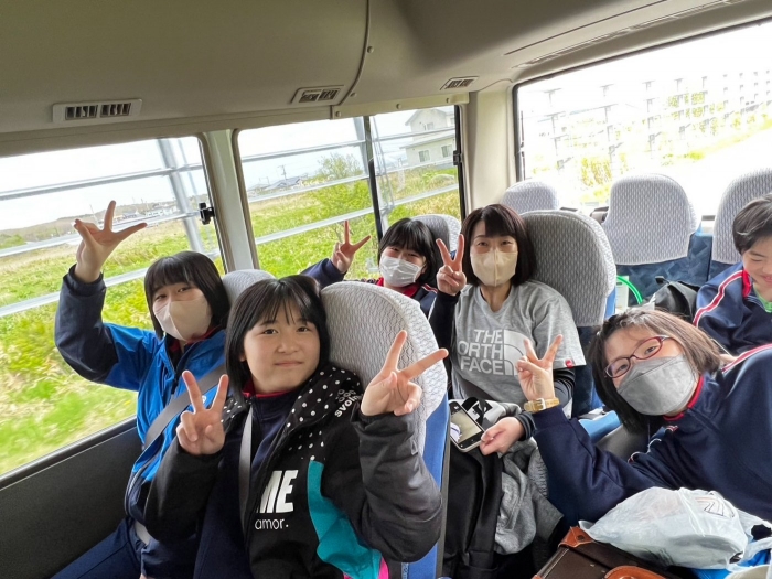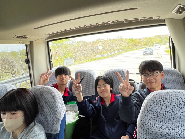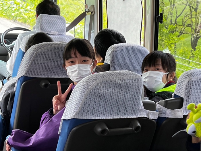 バスの後ろから見ていると手を降ったり、拍手をしたりさてました。
