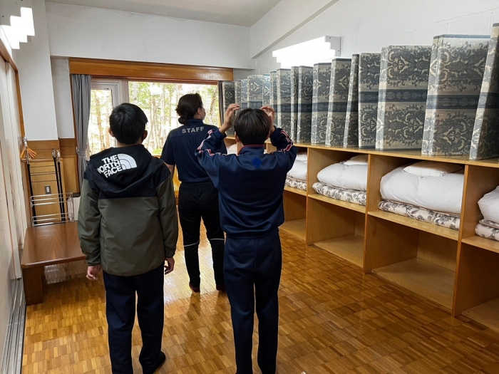 宿泊研修その14 2023年05月25日(木) 行事 来たときよりも美しくなりました! そして朝食ではバイキング形式で配膳されたおかずを完食し、片付けも丁寧に行いました。これから焼板クラフトに挑戦します。 食後の部屋チェックを終わったがループから食後の腹ごなし…というレベルではないくらい動いています!