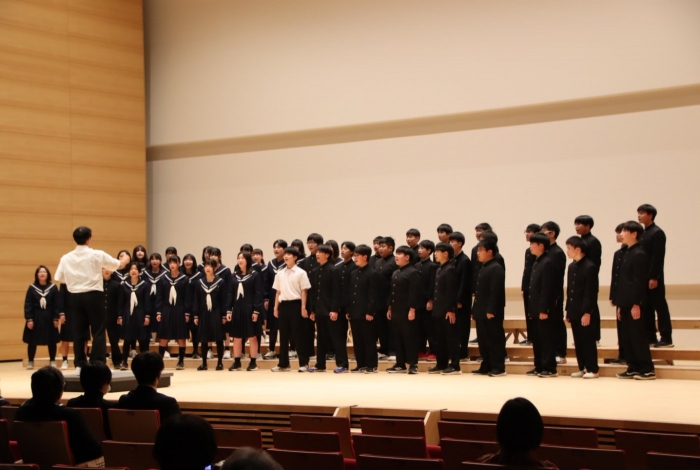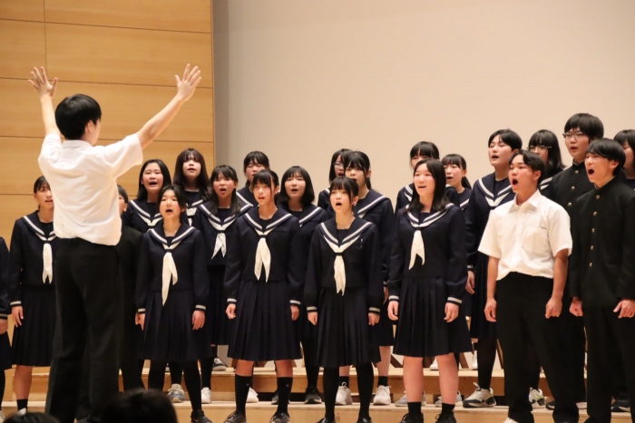 コロナ禍も明け、4年ぶりに合同音楽祭が別海町生涯学習センターで開催されました! 本校生徒は文化祭で歌った「足跡」「青い鳥」の2曲を演奏し、いつもながら迫力ある歌声とハーモニーで心に響く合唱を会場に届けていました。