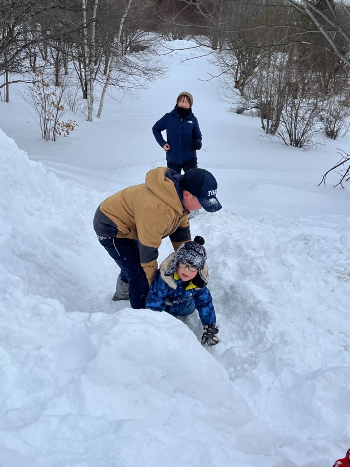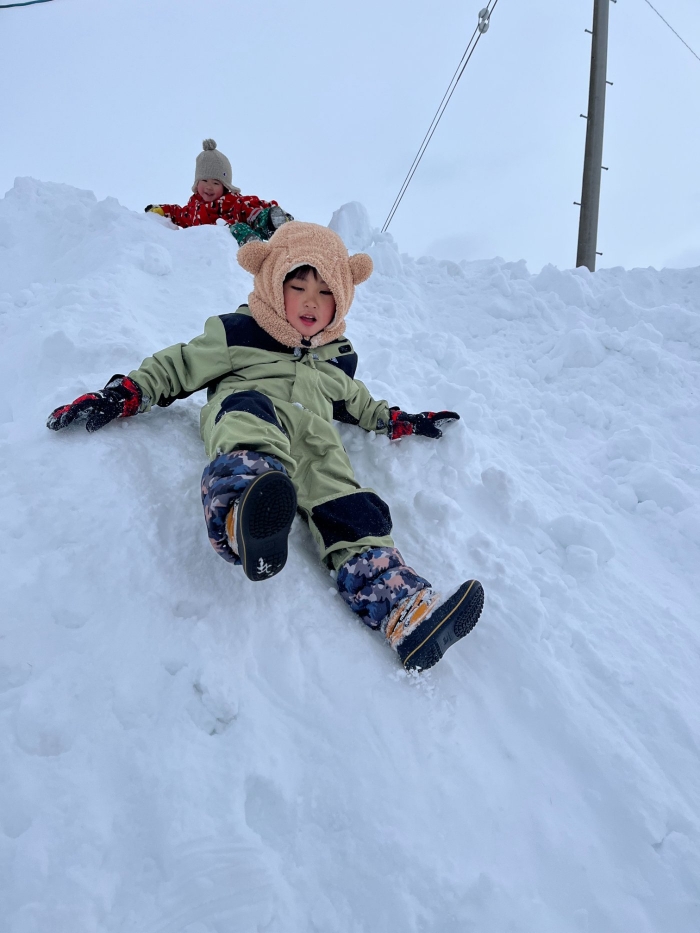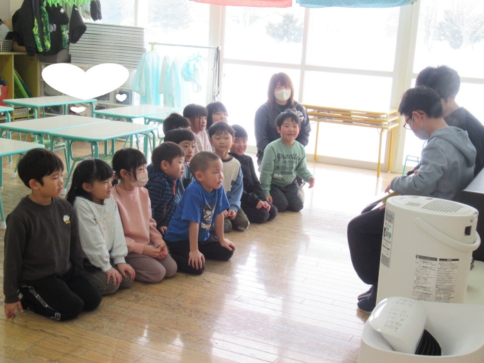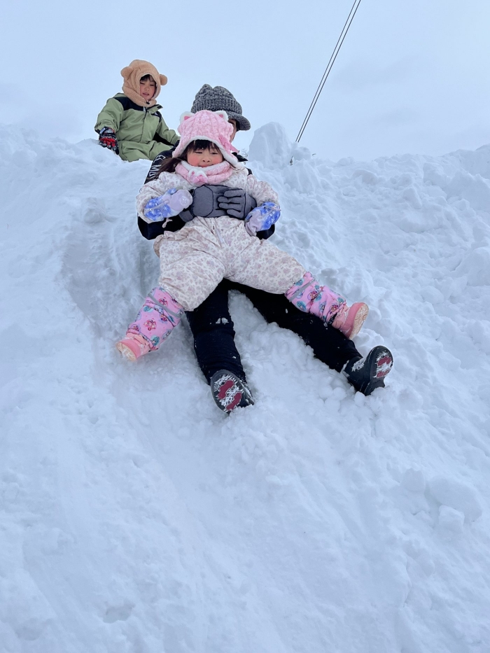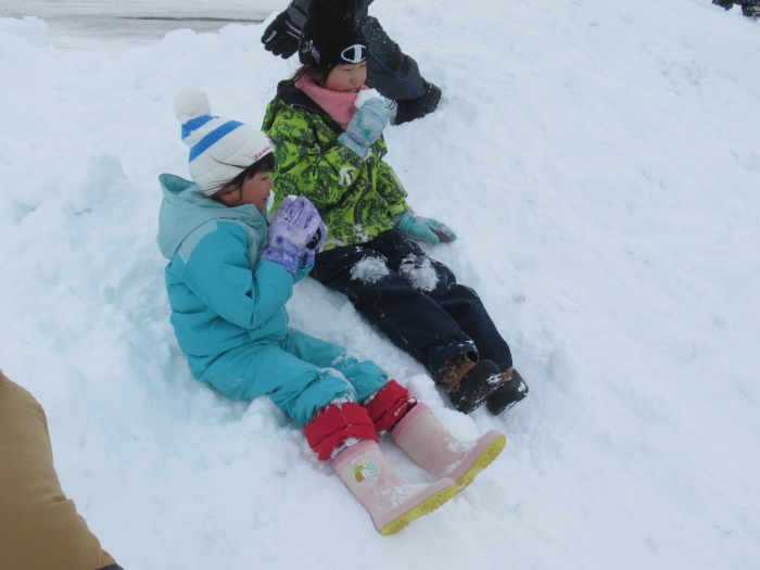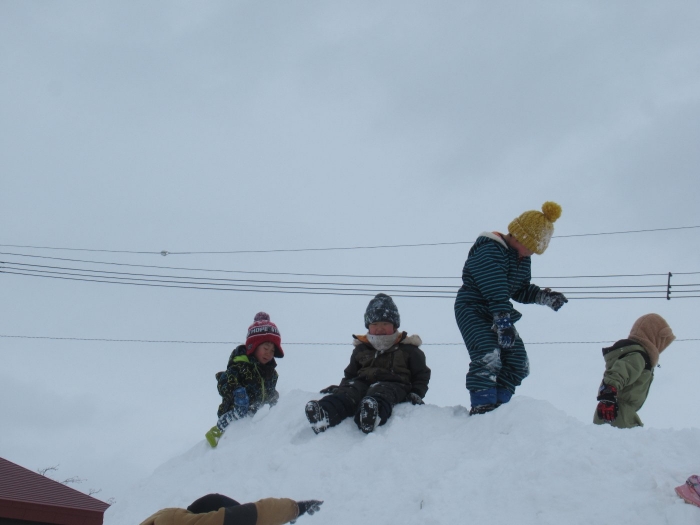 月曜日は、小学6年生4名が職業体験で来園していました。この日は、全クラスでスケートリンク方面へ遊びに行くことになっていたので、6年生も一緒に遊びに行きました。最初は、お互いに緊張感が漂う雰囲気でしたが、帰る頃には笑顔で楽しむ様子が見られていました。4名のうち3名は、上西春別幼稚園を卒園したお友達で、いちご組の時代はR先生が担任でした。幼かった子ども達が、立派に成長している姿を見ることができるのは、本当に嬉しいことですね。寒さも気にせず、靴も洋服もびしょ濡れになりながら子ども達とたくさん遊んでくれました。またいつでも、遊びに来てくれたら嬉しいですね。
