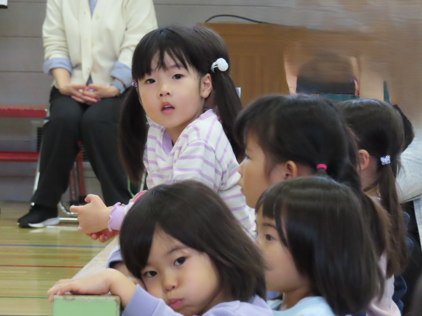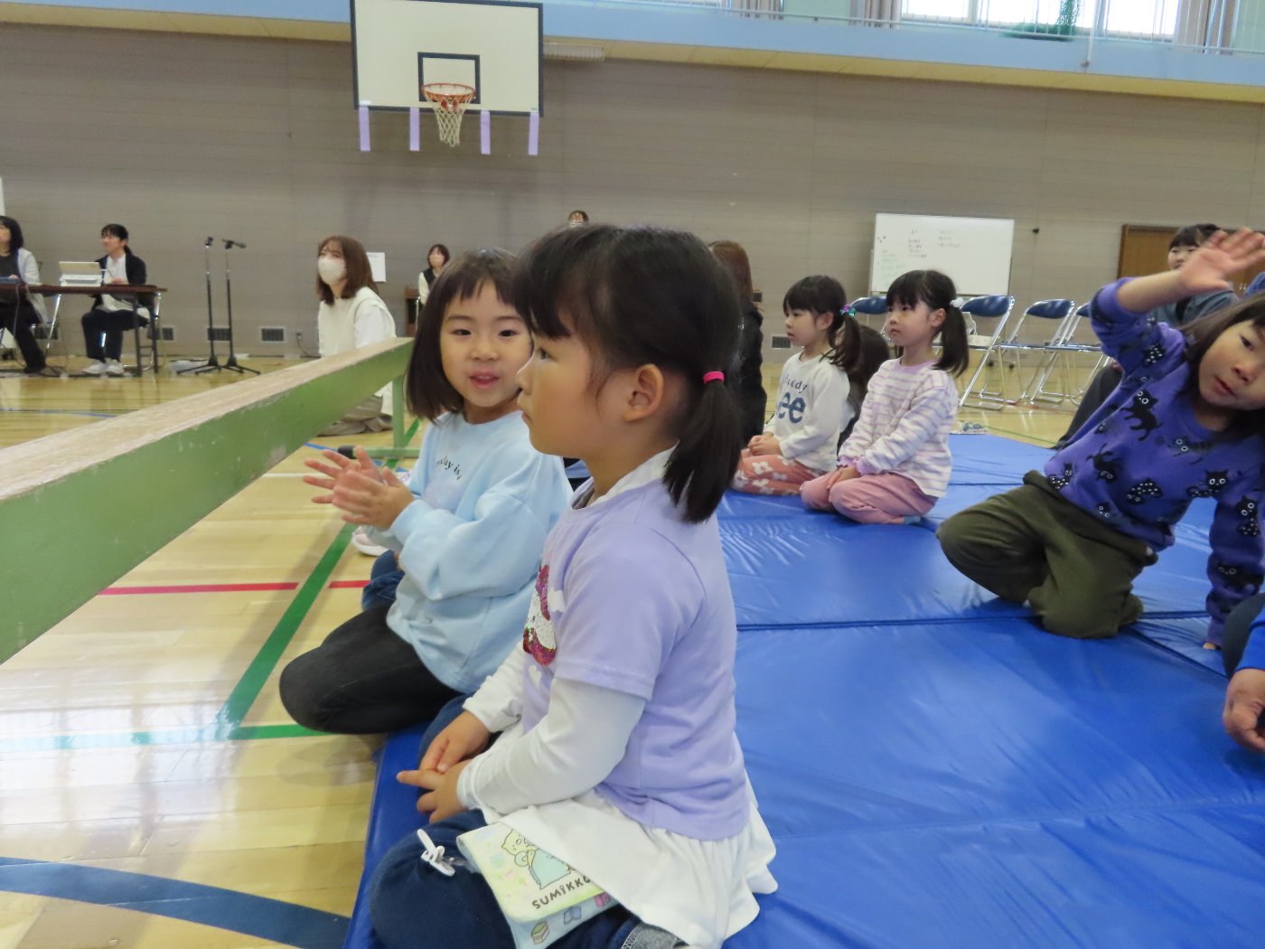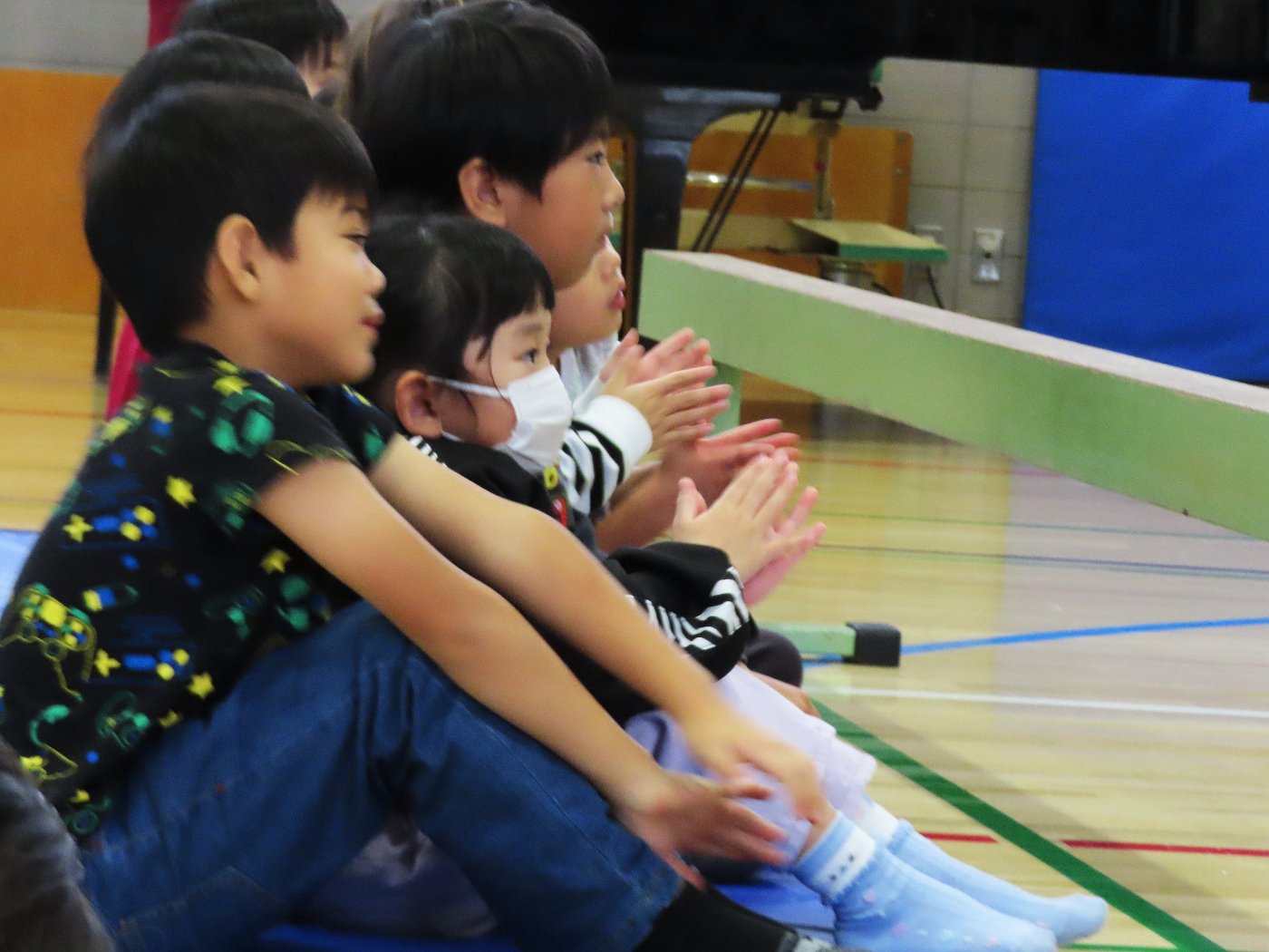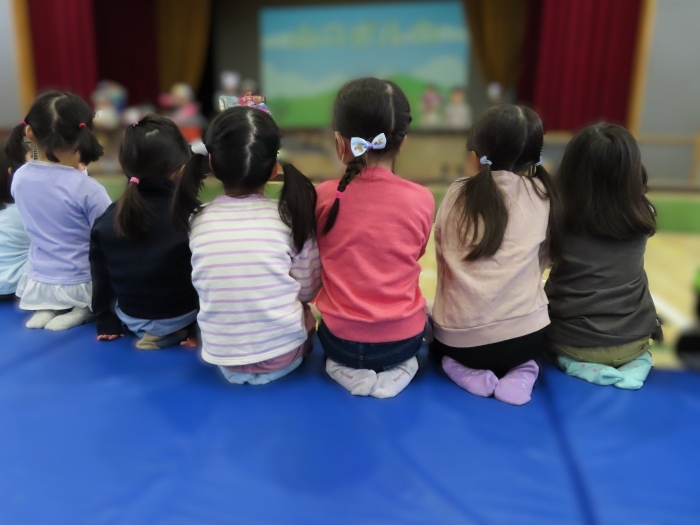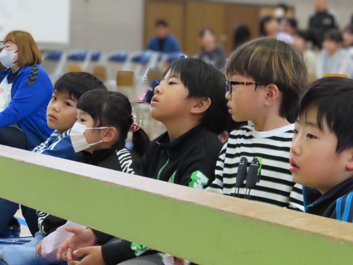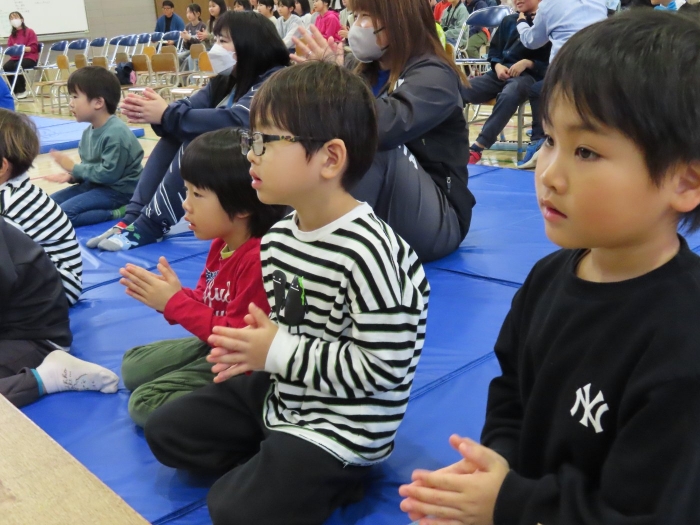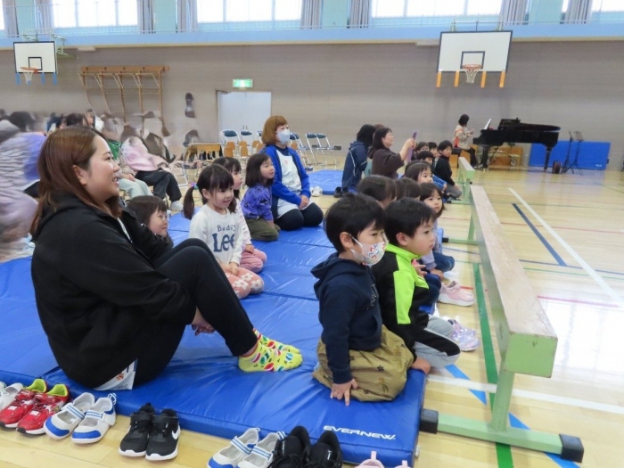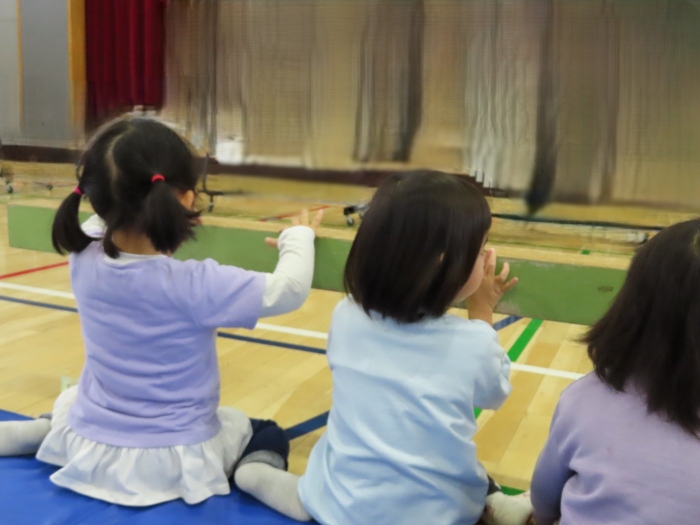 幼稚園で一緒に過ごしたことのある友達や、自分のお兄ちゃん・お姉ちゃんを見つけると、満面の笑みで嬉しそうにしていた子ども達。幼稚園の何倍もの広さの会場に響き渡る歌声や楽器の音色に引き込まれ、自然とリズムをとったり、拍手を送ったりしていました。大いに心を揺り動かされ、幼稚園に戻った後も発表会のことを話題にしたり、ゆめの会で披露する歌を練習したりする姿もありました。『小学生ってすごい!! 』憧れの気持ちから、自分たちのゆめの会に向けてもヤル気がアップしたようです!